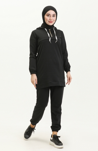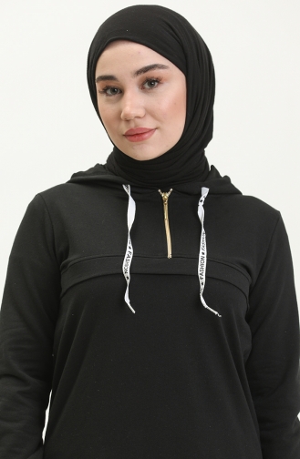 Yakası Fermuarlı Kanguru Model Takım Siyah