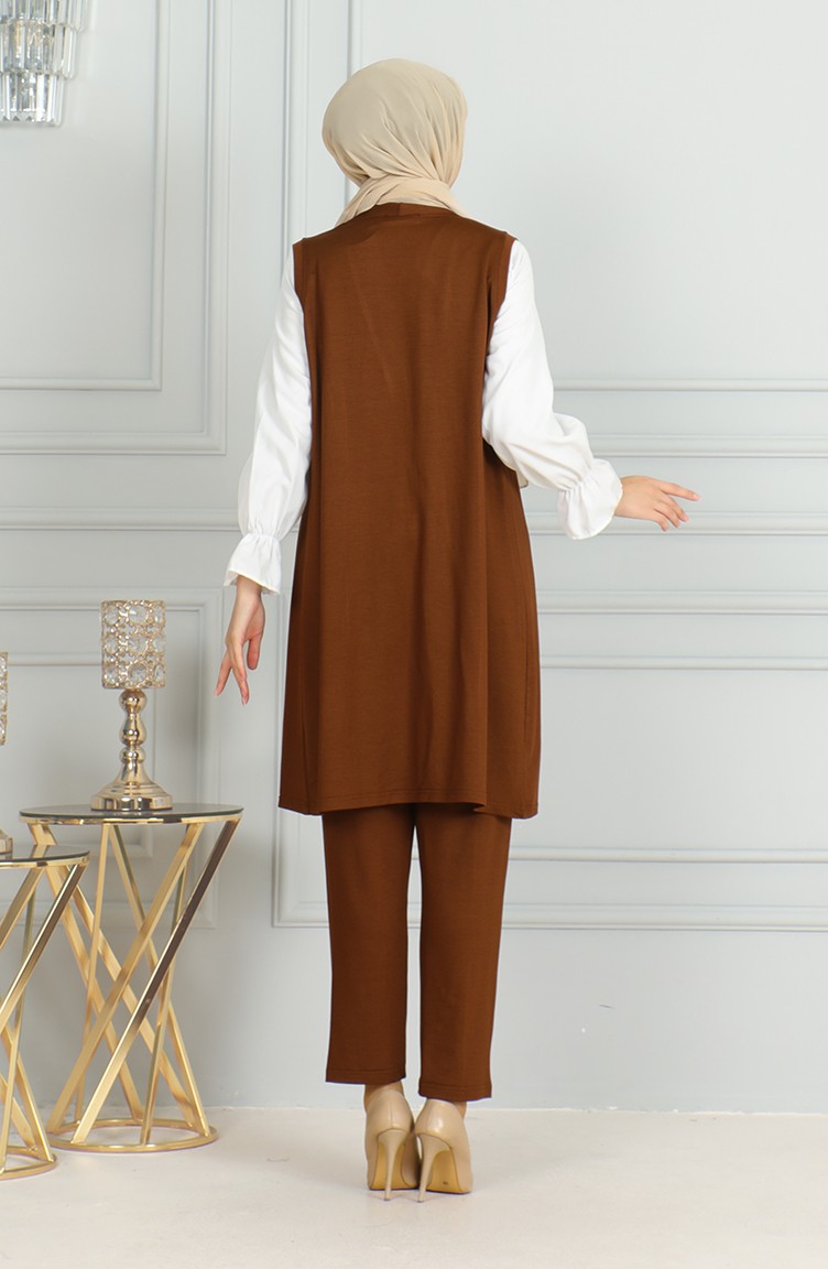 Yelek Pantolon İkili Takım 20046-07 Taba