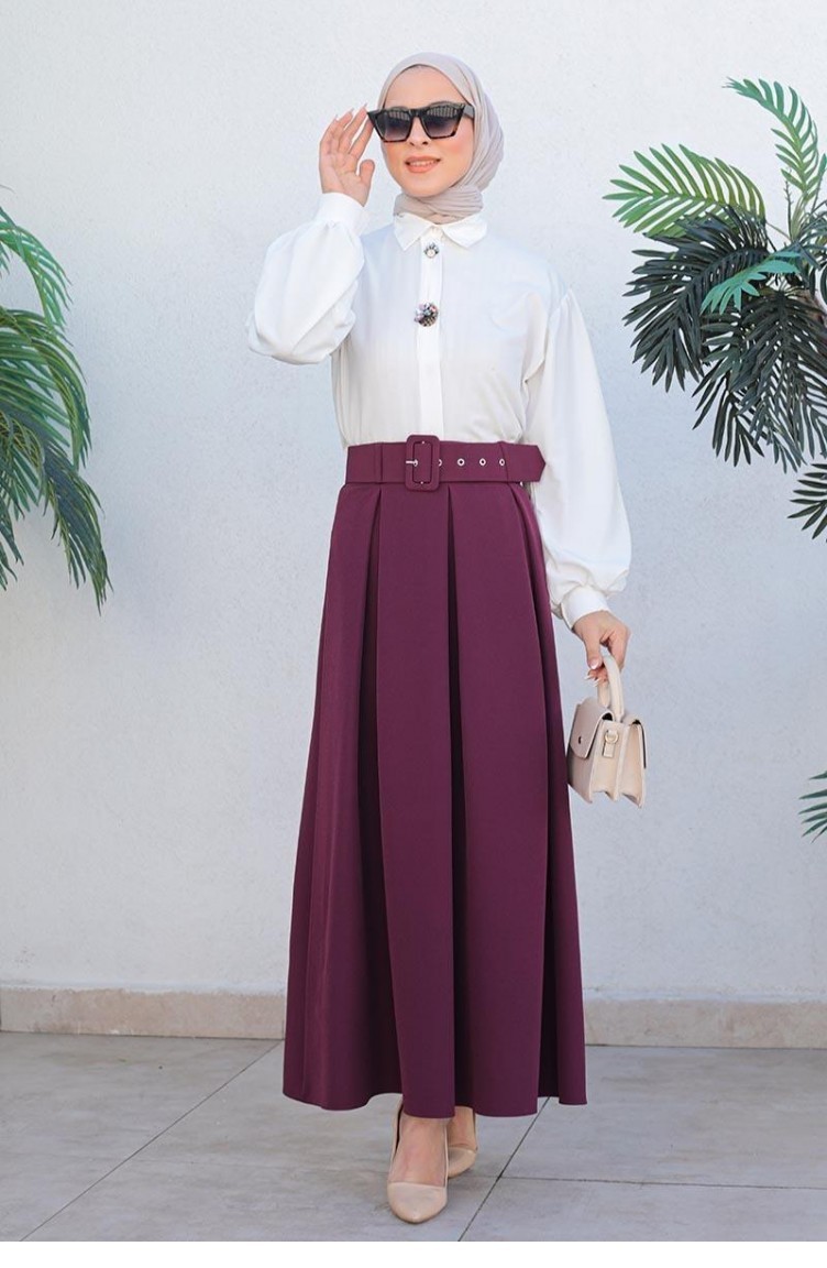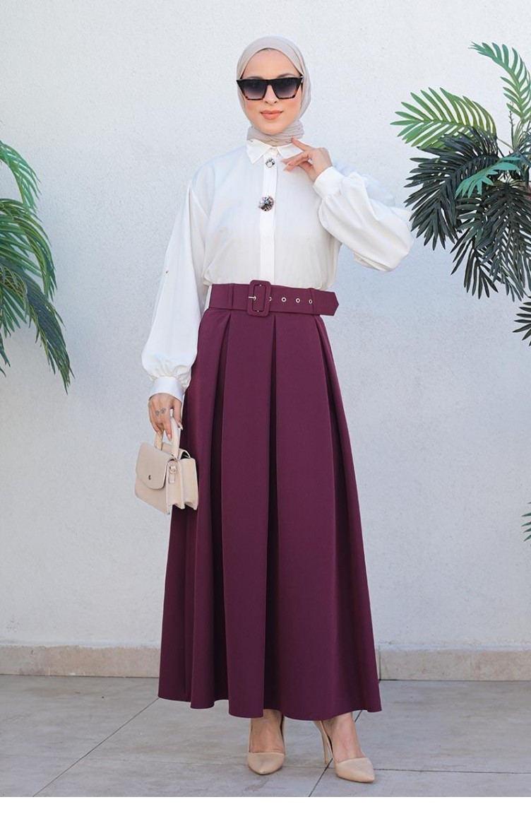 Mürdüm renktedir. Krep kumaş. Sade. Mevsimlik. Büyük beden seçeneği mevcuttur.