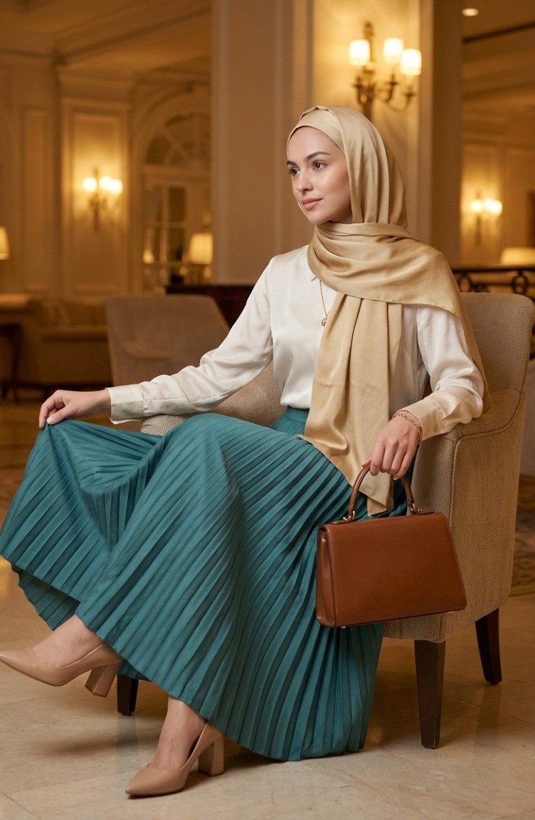 Çağla Yeşili renktedir. Polyester kumaş. Sade. Lastik detaylı. 4 Mevsim tercih edebilirsiniz. Standart.