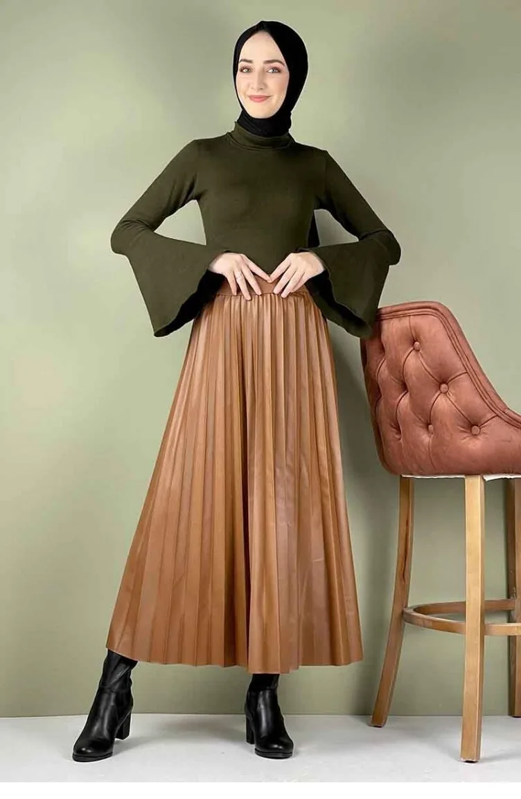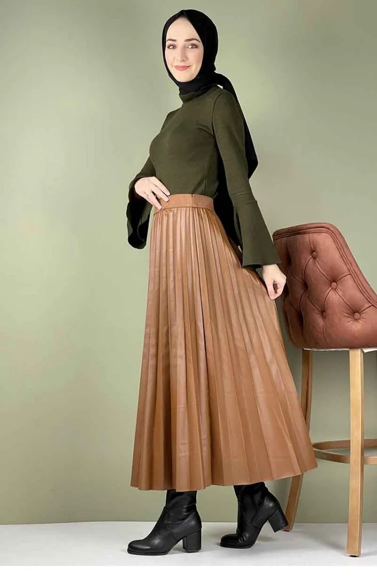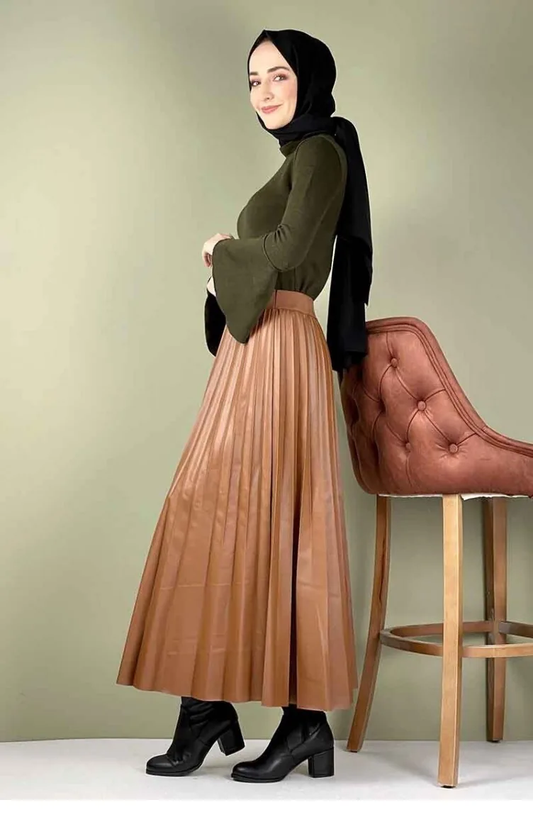 Piliseli Deri Etek Taba