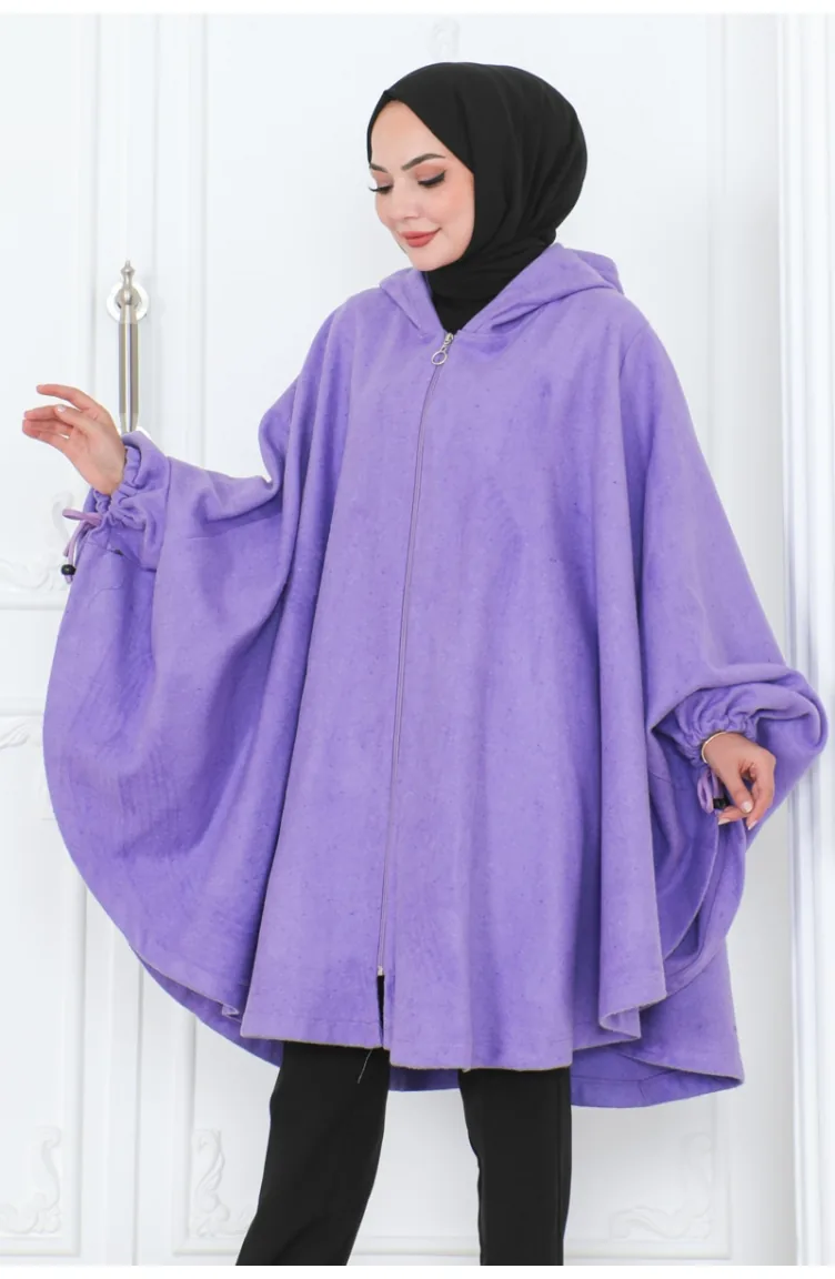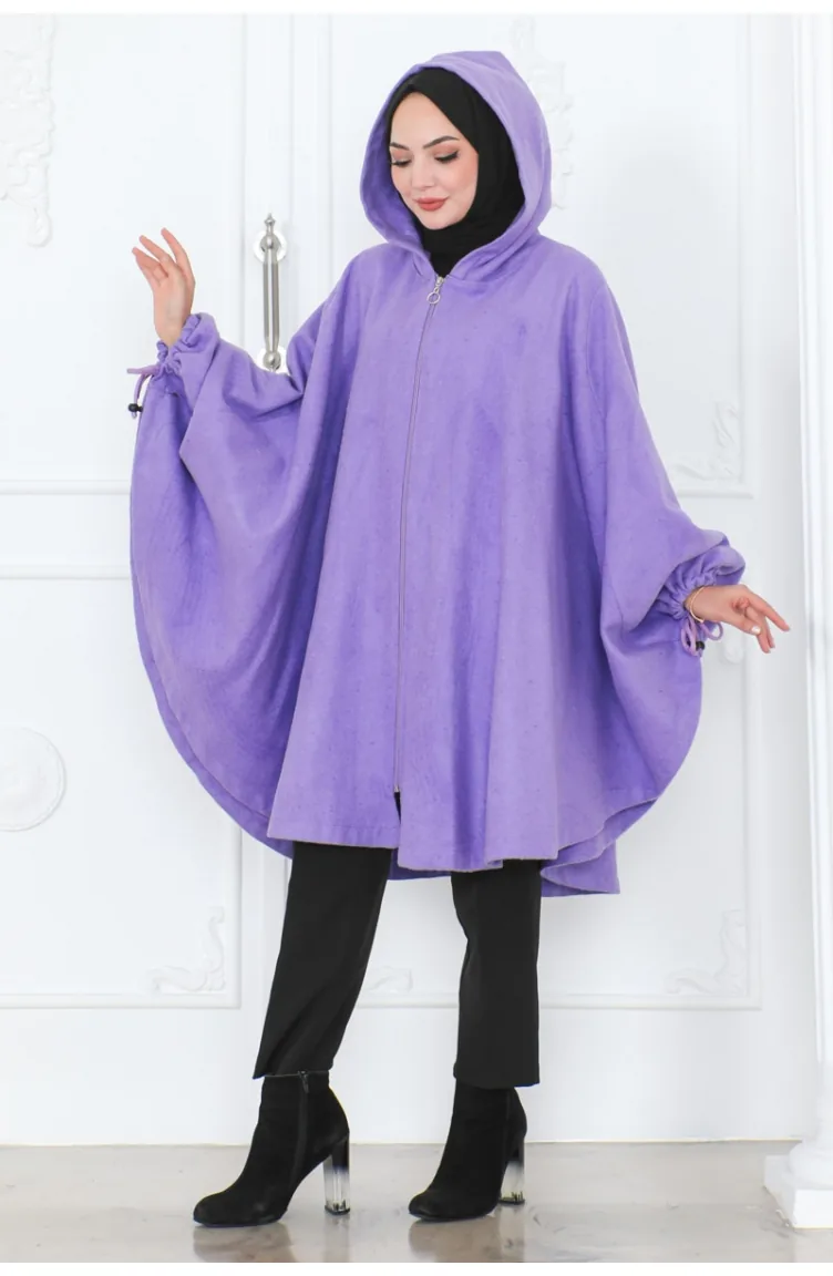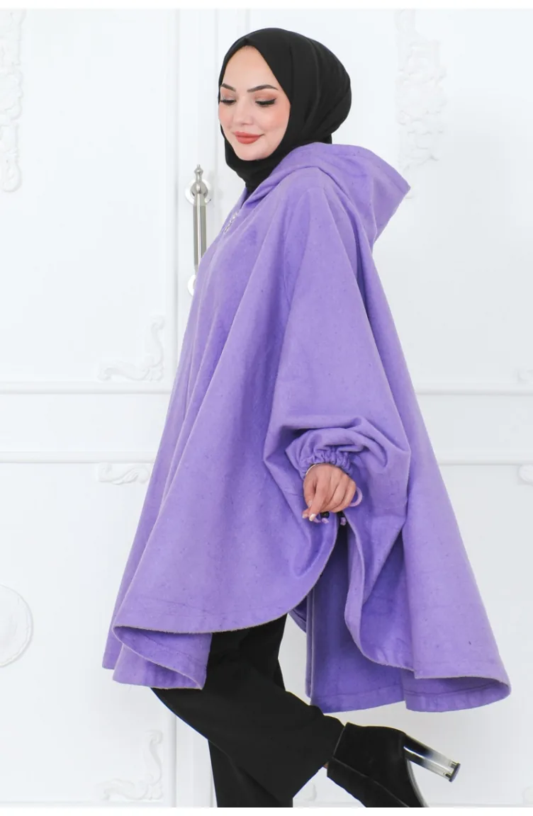 Kapüşonlu Panço 0505-01 Lila