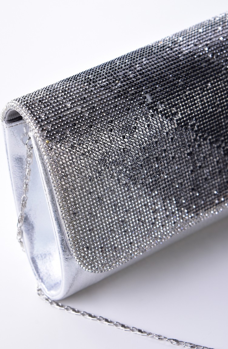 Bayan Yatay Taşlı Abiye Çanta 0428-02 Gümüş