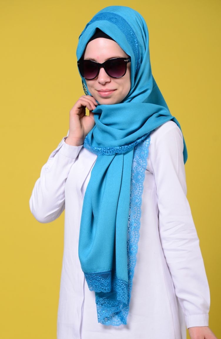 Sunway Paşmina Dantelli Şal 6000 19 Açık Mavi