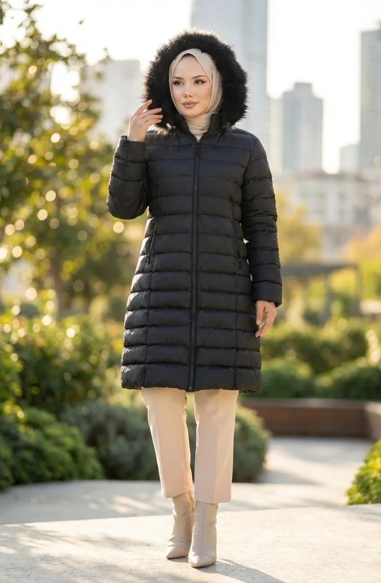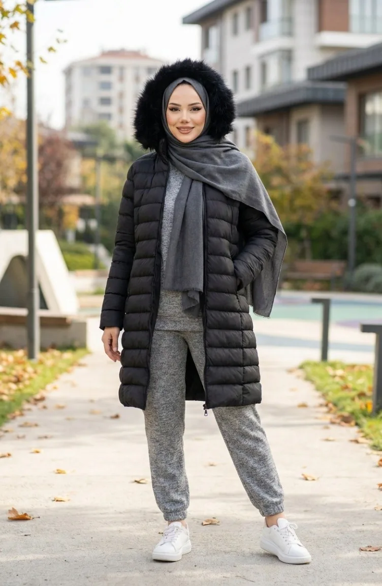 Kaliteli şişme dolgusu (Polyester) ile en soğuk günlerde bile maksimum sıcaklık sağlarken, tam boy fermuarlı ve kullanışlı cepli yapısıyla pratik bir kullanım sunar. Sade siyah rengiyle her kombine uyum sağlayan bu tesettür mont, kışlık şıklığınızın ayrılmaz bir parçası olacak. Bol kesim kalıbı ve büyük beden seçenekleri ile konforu garantiler.