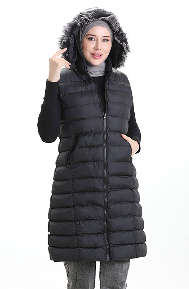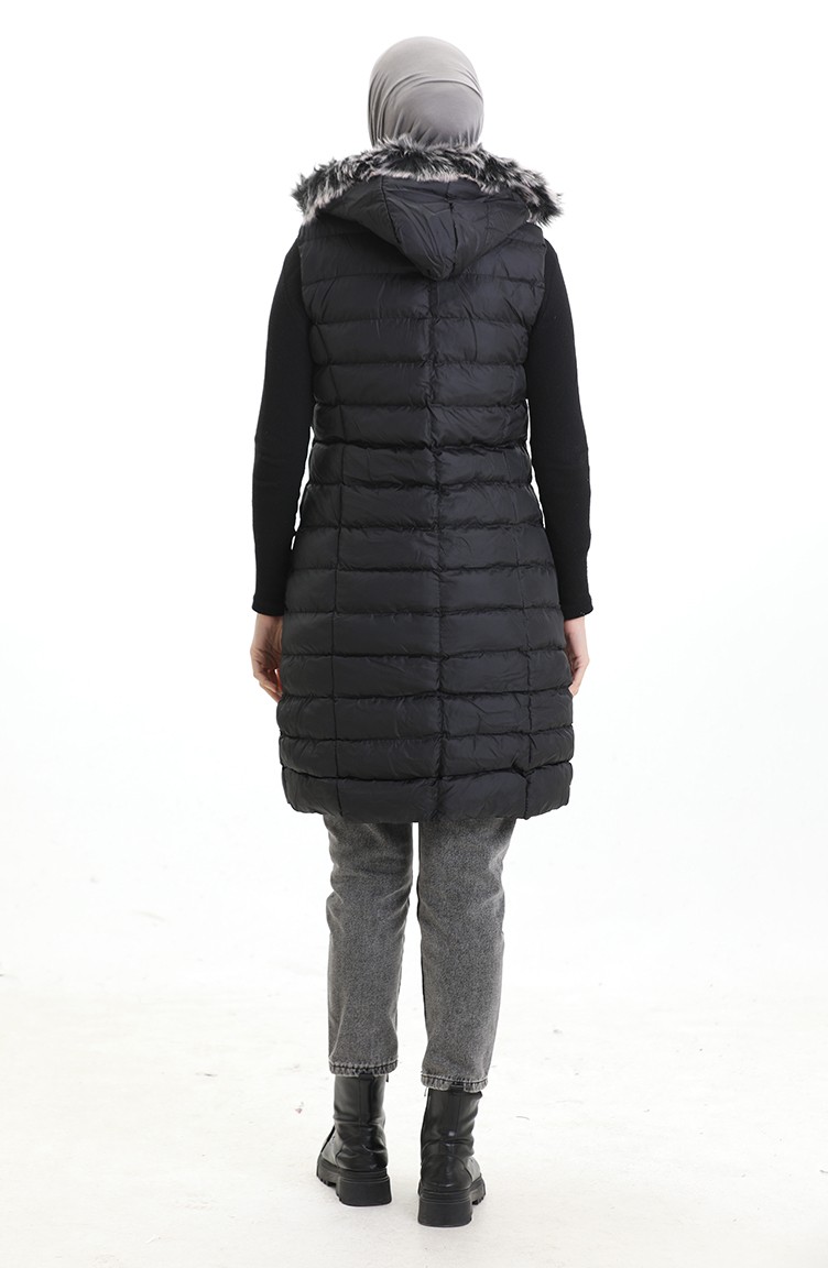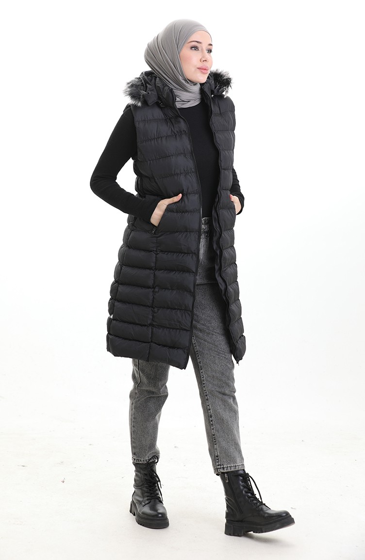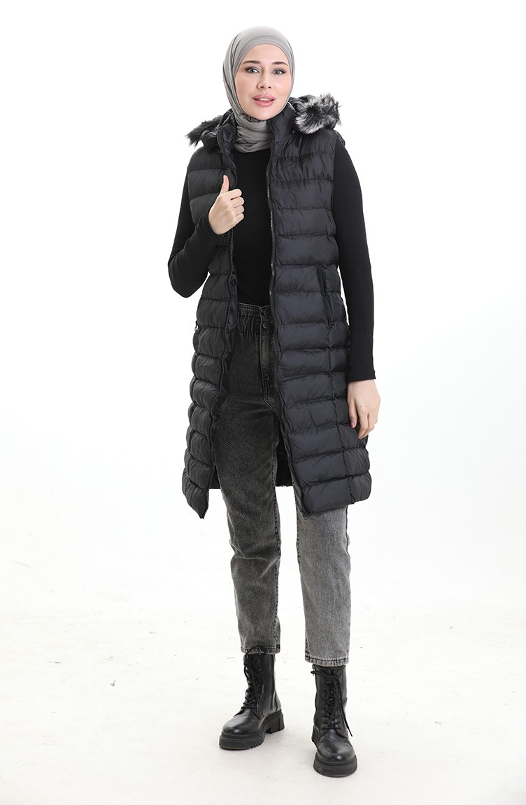 Kapüşonlu Fermuarlı Şişme Yelek 0169B-01 Siyah