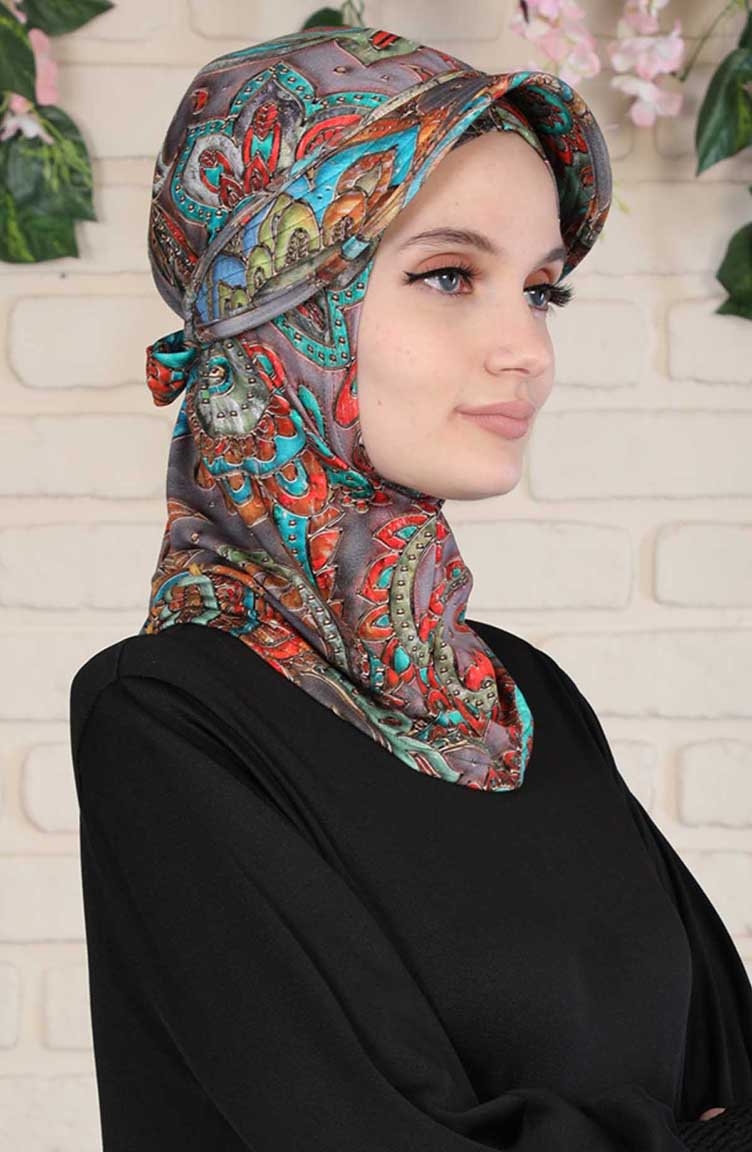 Siperlikli Tesettür Bone B0055D-01 Haki Turkuaz
