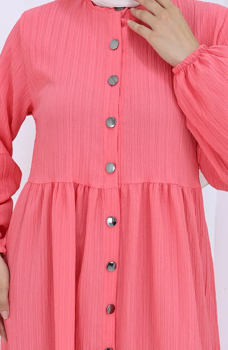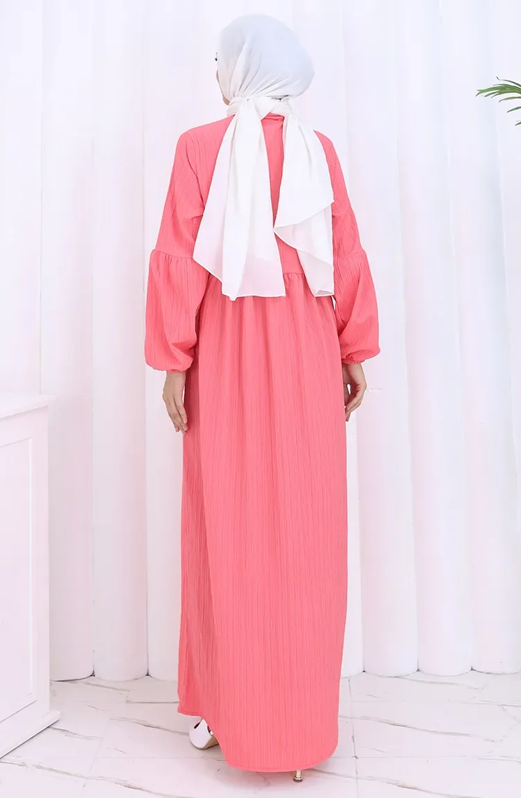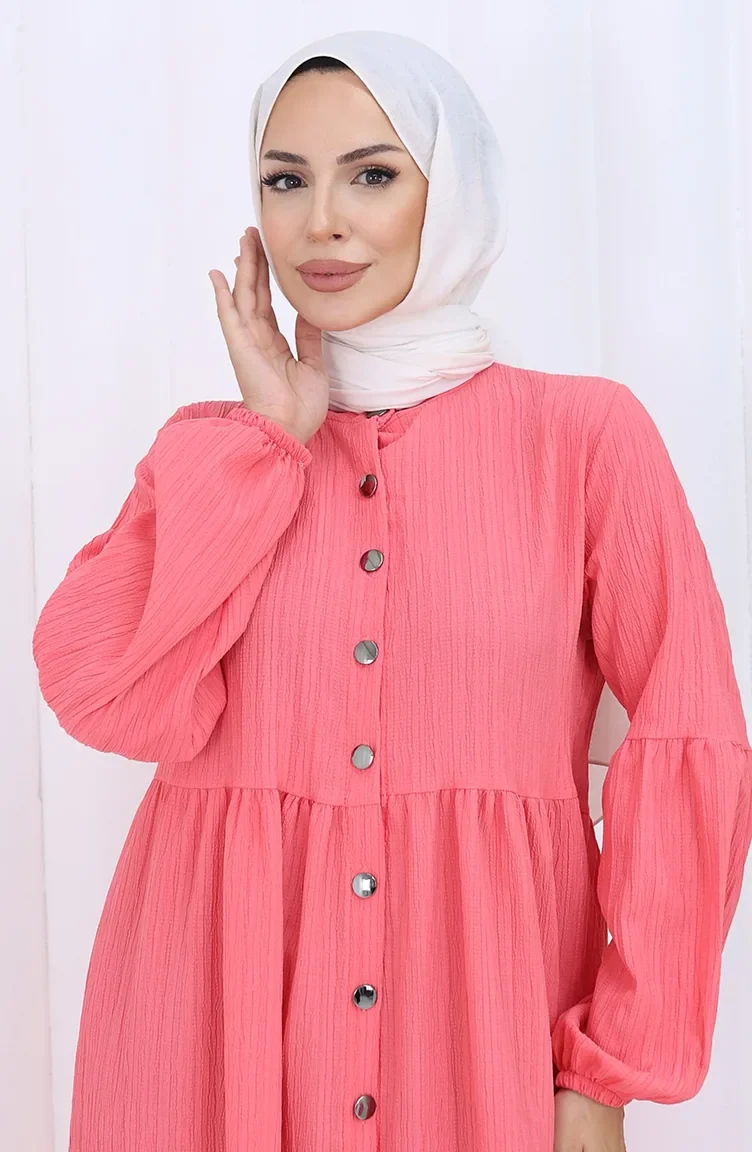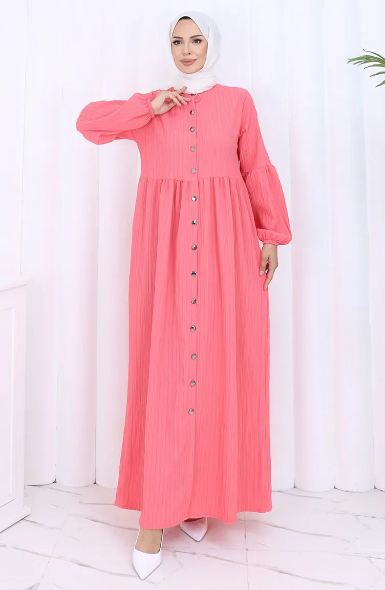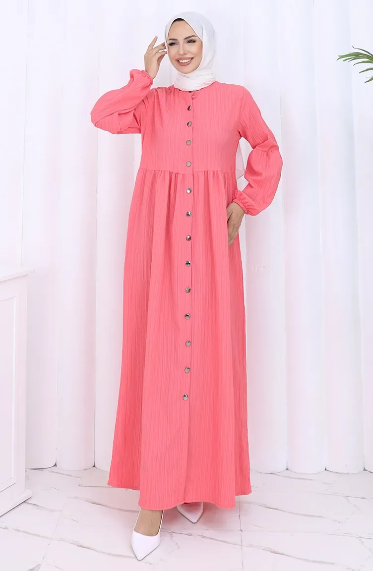 Boydan Düğmeli Kolu Lastikli Ferace 2124-05 Nar Çiçeği