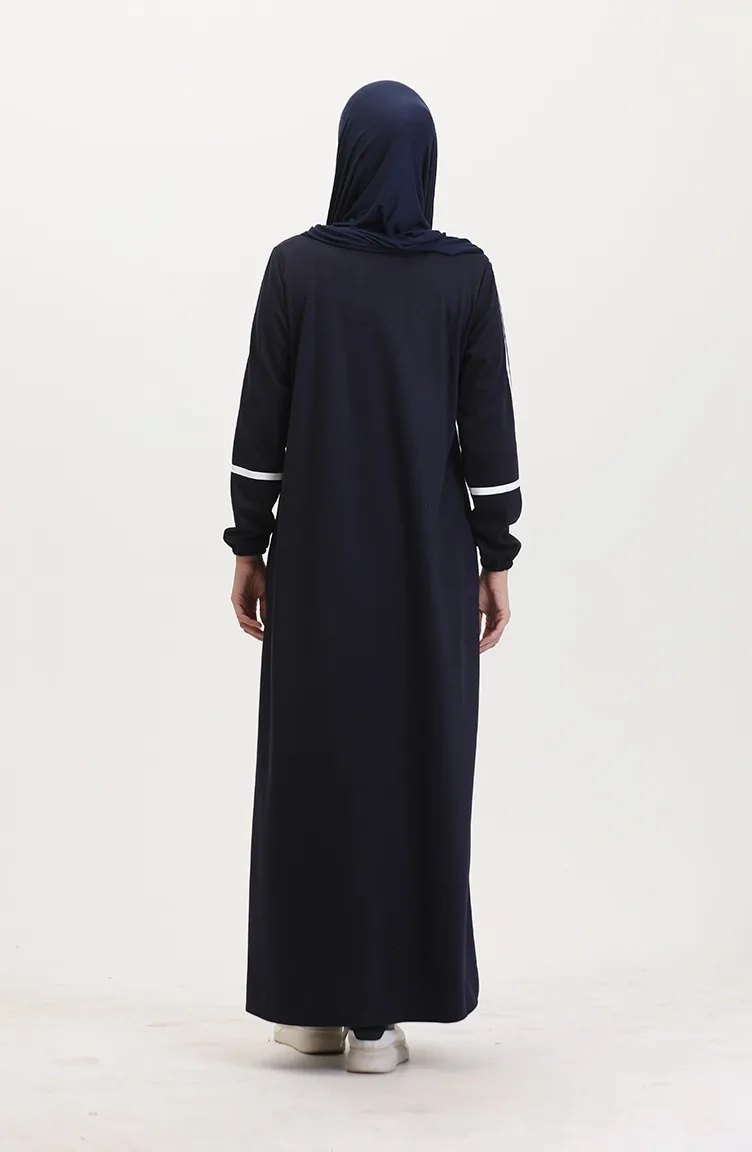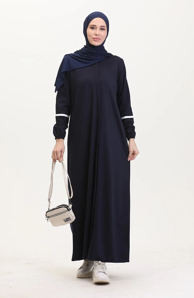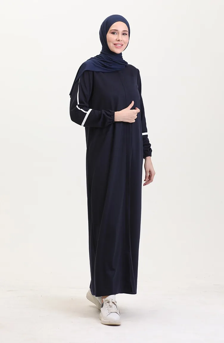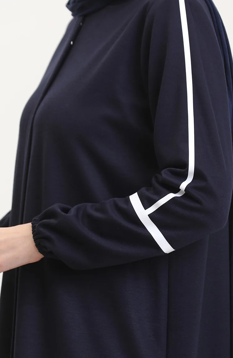 Kol Baskılı Fermuarlı Ferace 13045-01 Lacivert