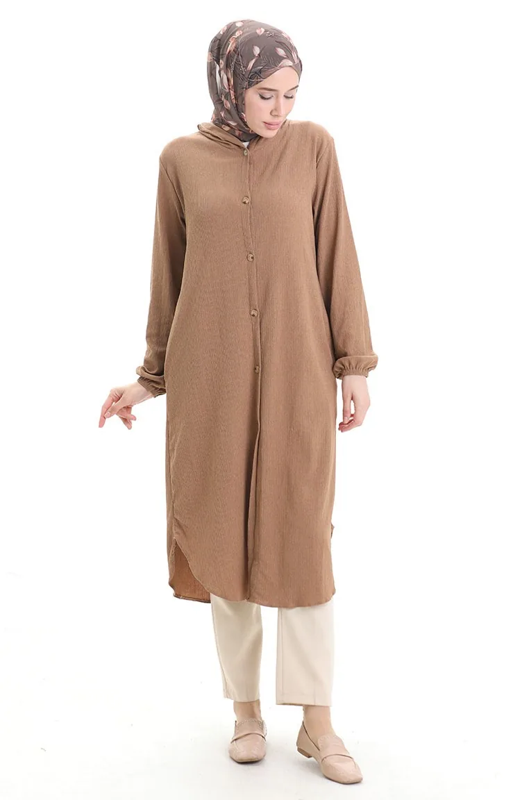Vizon renktedir. Bürümcük kumaş. Sade. Düğmeli. Lastik kollu. 4 Mevsim tercih edebilirsiniz. Büyük beden seçeneği mevcuttur.
