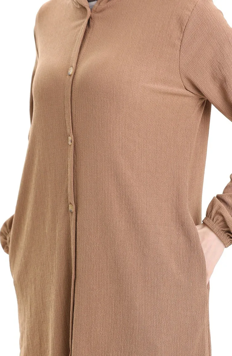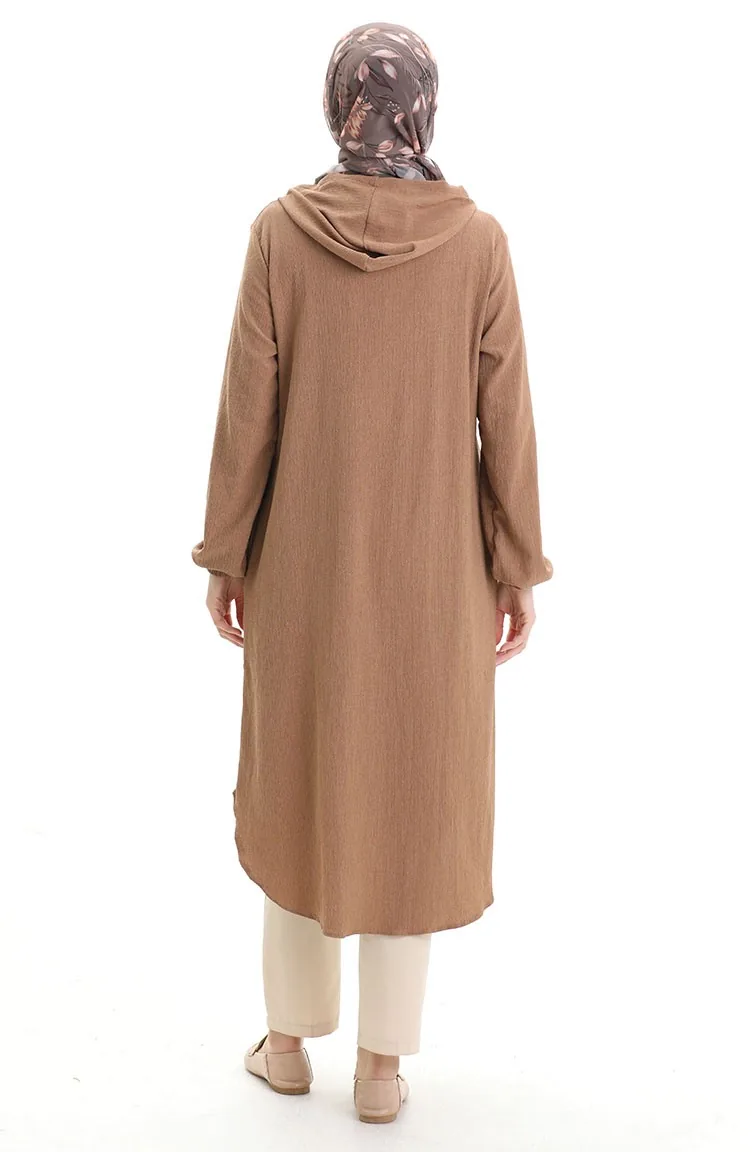 Kapüşonlu Düğmeli Kap 7272-02 Vizon
