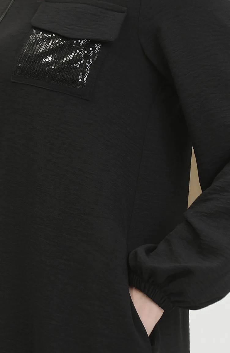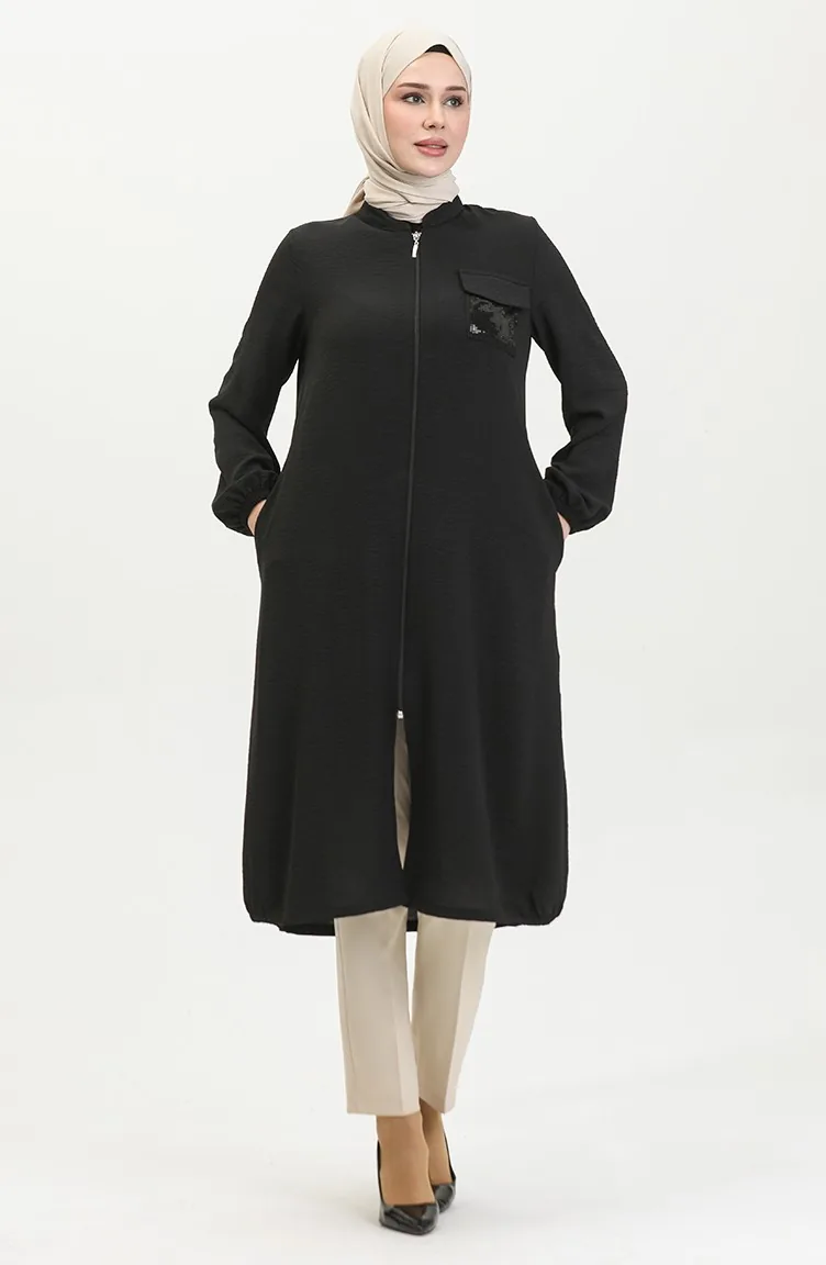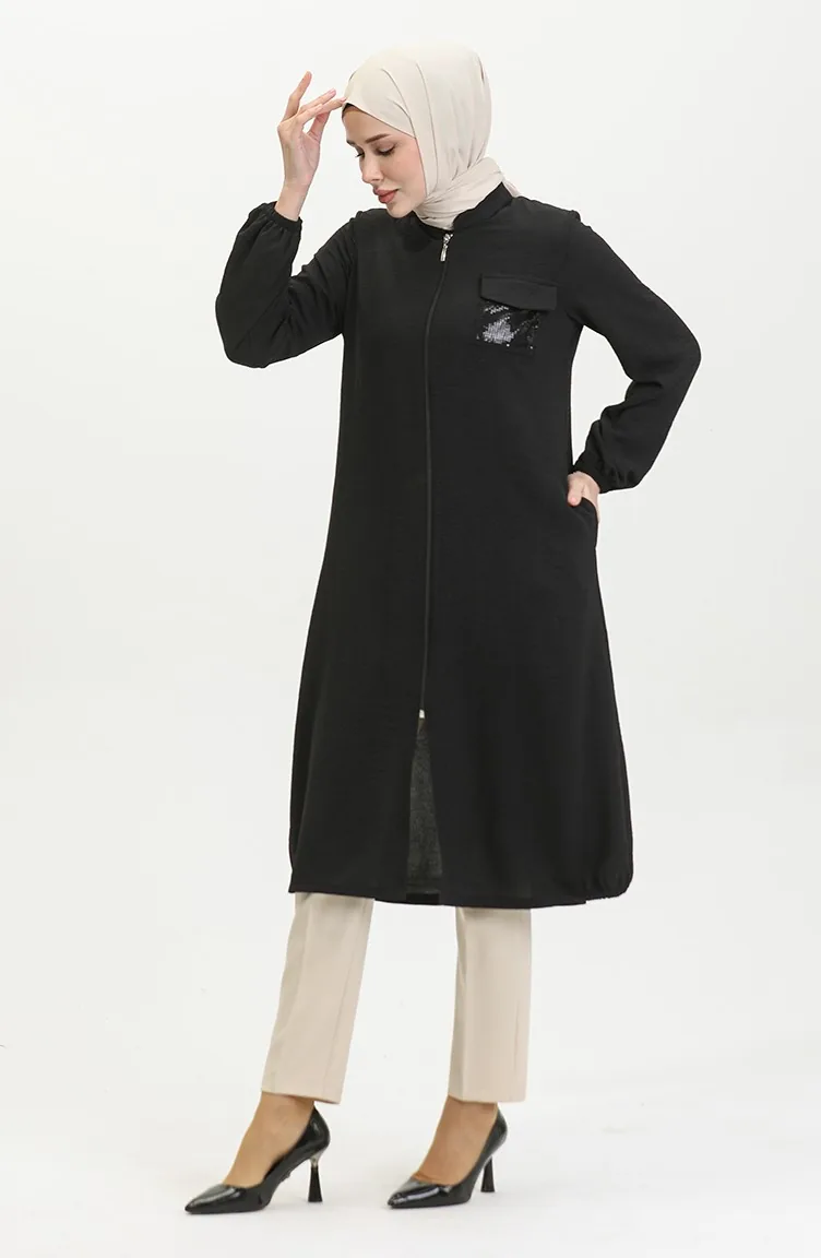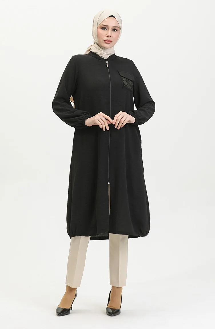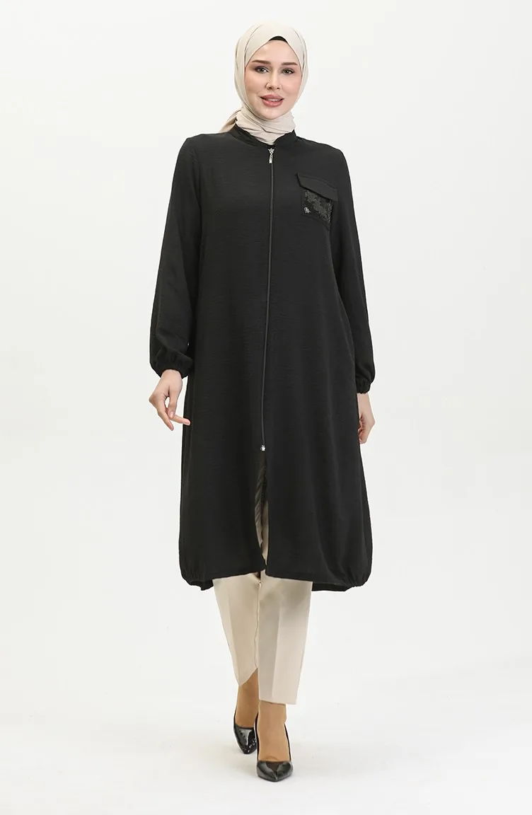 Pullu Fermuarlı Kap 1014-06 Siyah