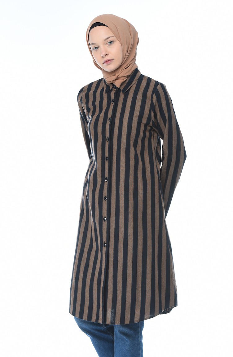 Çizgili Kışlık Tunik 5421-01 Kahverengi