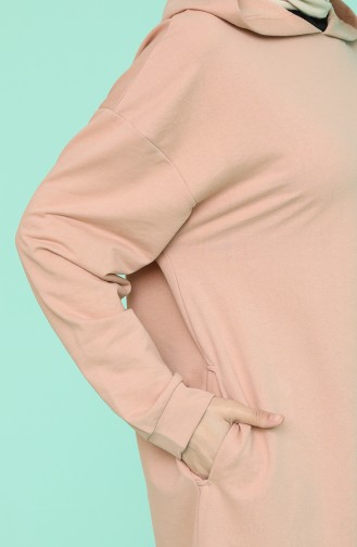 Kapüşonlu Spor Tunik 3007-04 Pudra