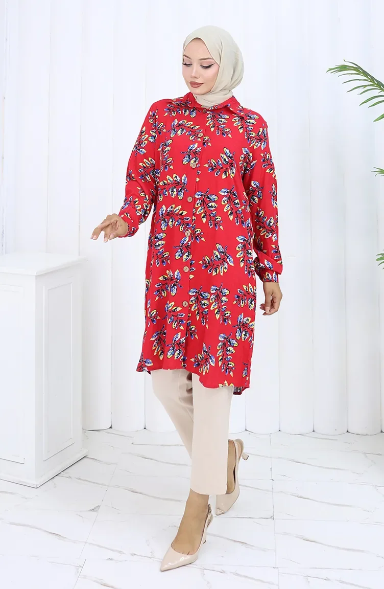 Viskon Gömlek Tunik 5035-02 Kırmızı