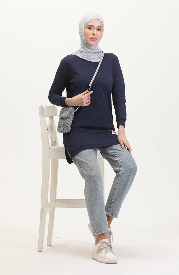 Yırtmaçlı Spor Tunik 0529-04 Lacivert