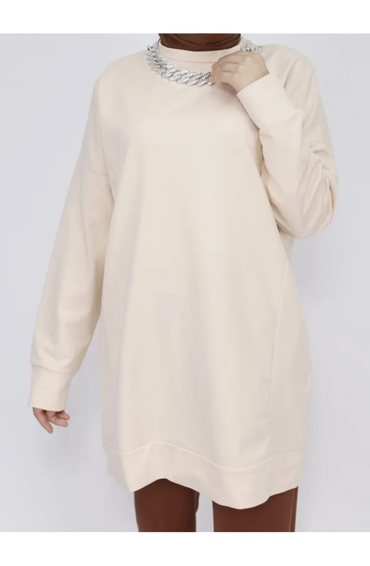 2 İp Kumaş Zincir Detaylı Sweatshirt 6988-03 Bej