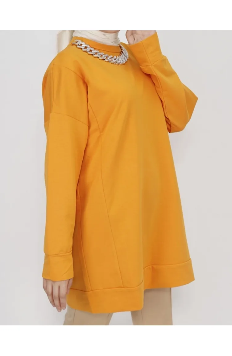 2 İp Kumaş Zincir Detaylı Sweatshirt 6988-04 Oranj