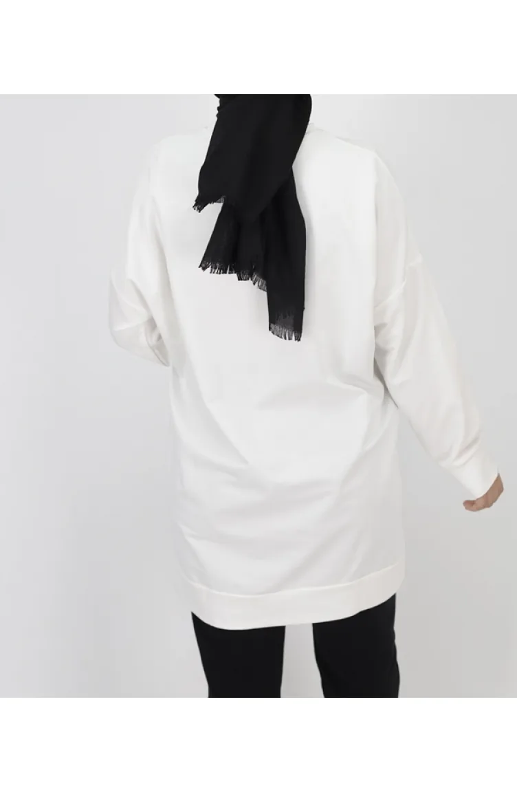 2 İp Kumaş Pul İşleme Detaylı Sweatshirt 6972-02 Ekru