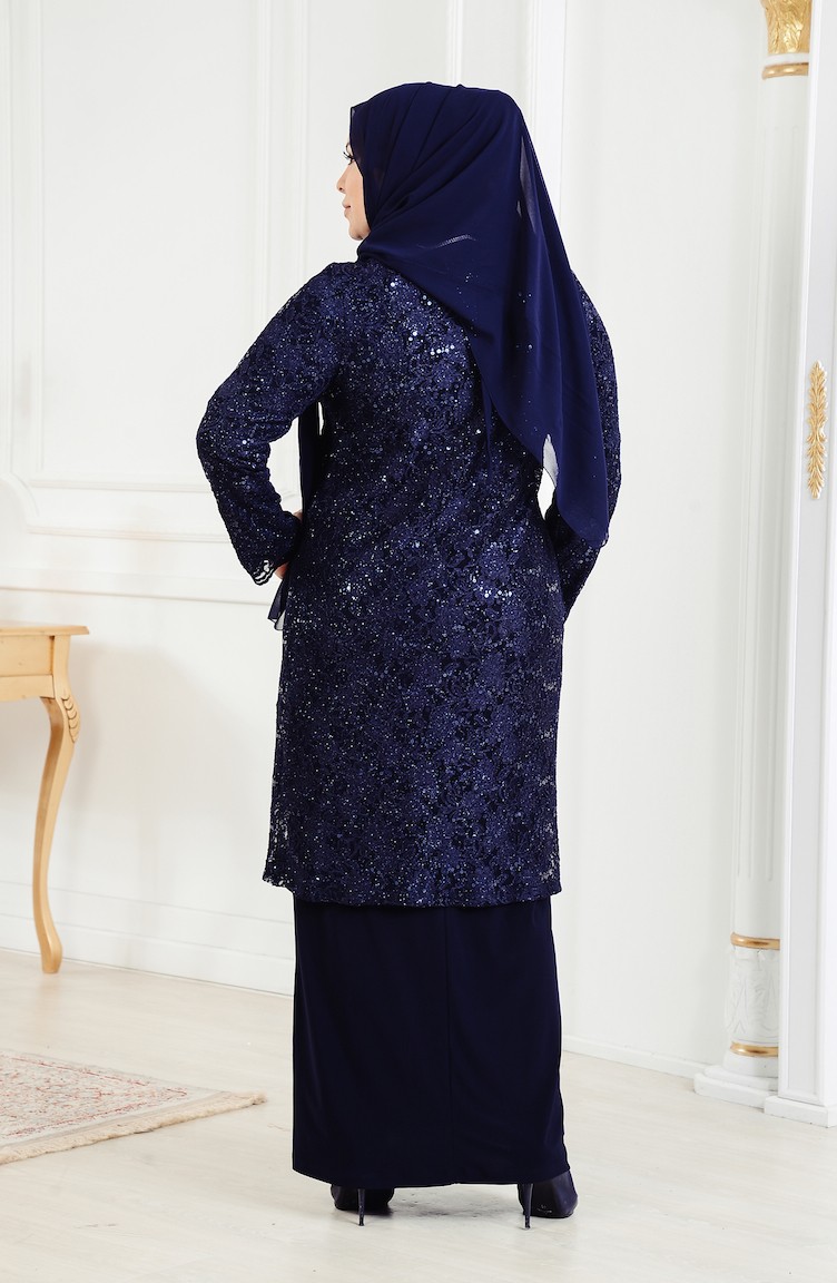 Büyük Beden Ceket Elbise Abiye İkili Takım 6135-01 Lacivert
