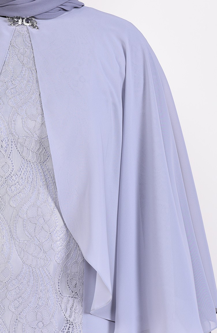 Büyük Beden Dantelli Abiye Elbise 1305-01 Gri