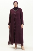Büyük Beden Payetli Abiye Elbise 2307-02 Mürdüm