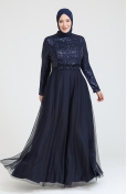 Büyük Beden Payetli Abiye Elbise 80114-02 Lacivert
