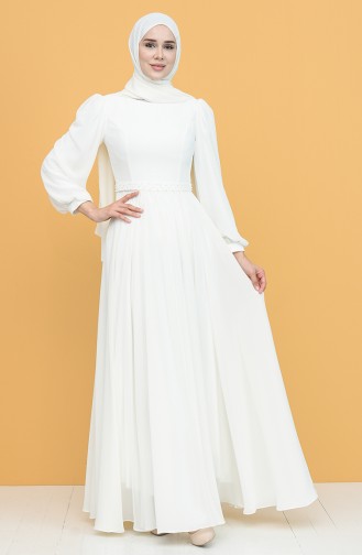 Çalıkuşu Yaka Ve Kemeri İncili Tesettür Abiye 4901-06 Ekru