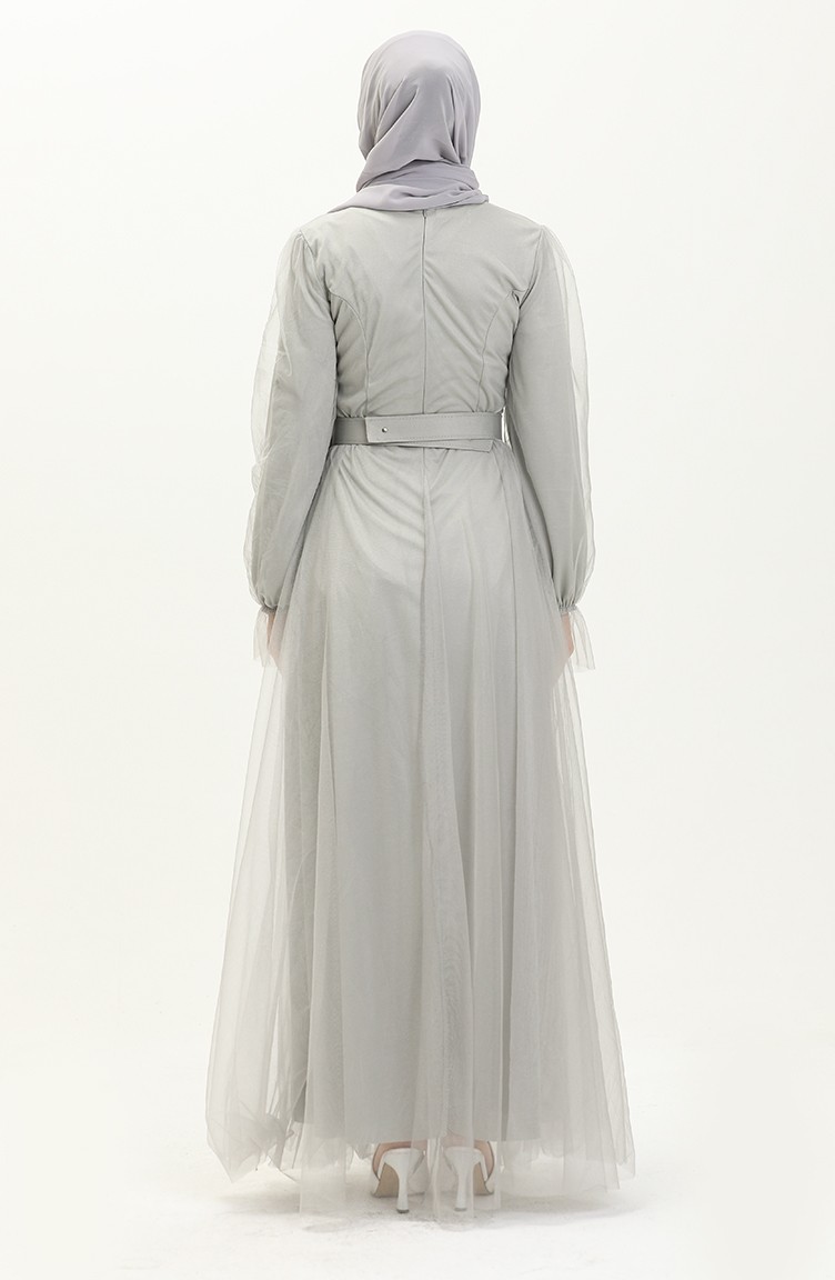 Kuplu Tül Abiye Elbise 2454-08 Gri