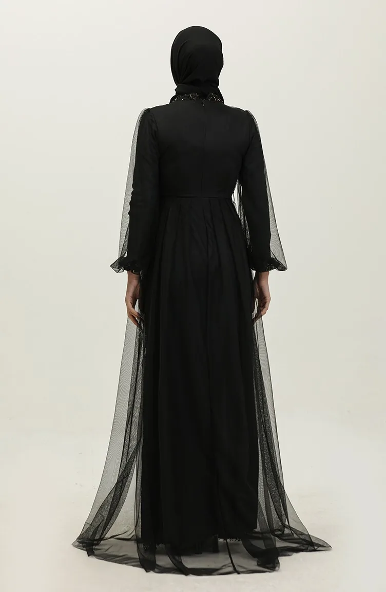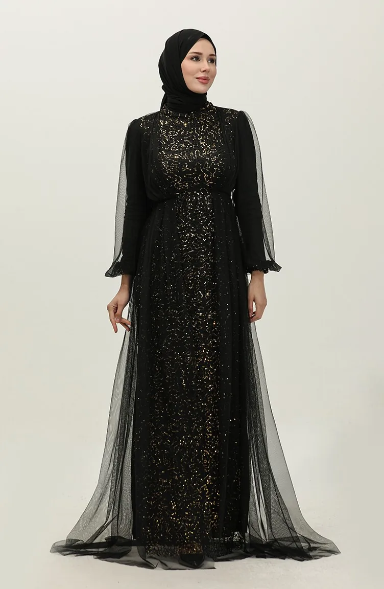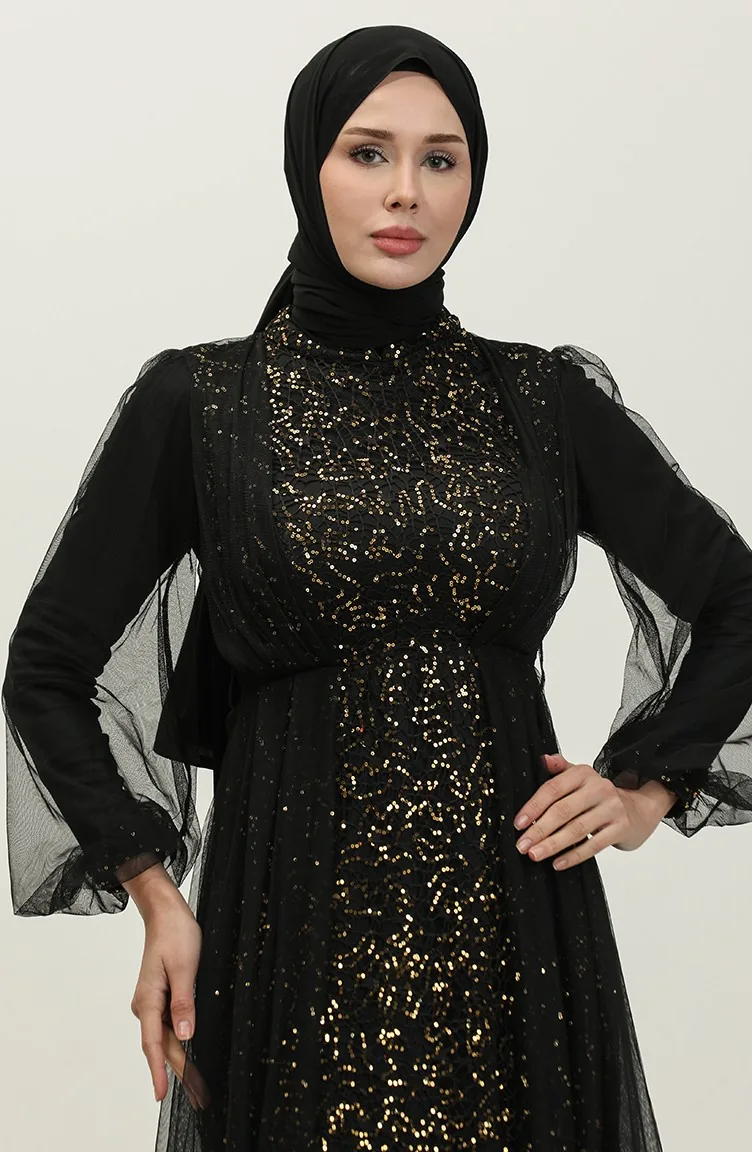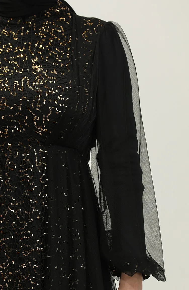 Payetli Abiye Elbise 6383A-03 Siyah Bakır