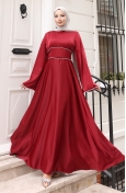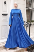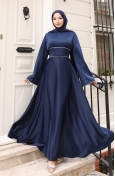 Bu astarlı tasarım, sıfır yaka (veya dik yaka) şıklığı, balon kol (lastik kollu) yapısı ve beli büzgülü (ve kuşaklı) detayıyla düğünlük abiye, nişanlık veya söz elbisesi olarak idealdir. 4 mevsim kullanıma uygun olup büyük beden seçenekleri mevcuttur.