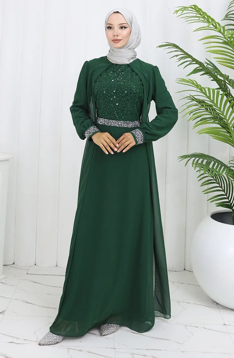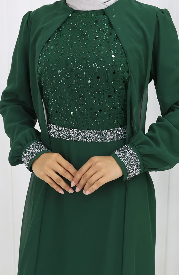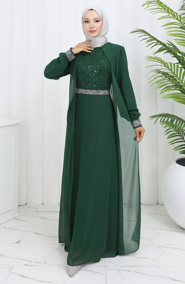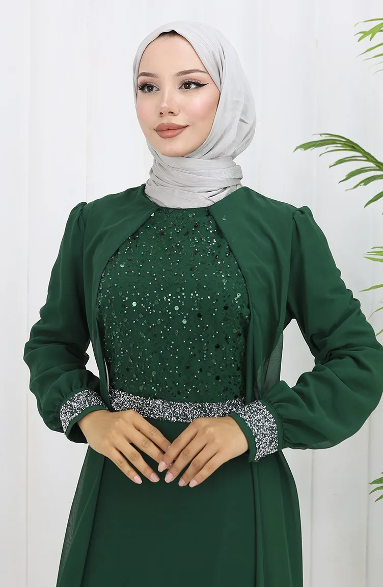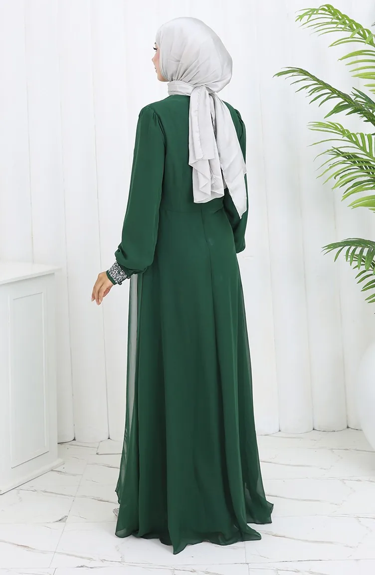 Şifon Abiye Elbise 52876-04 Zümrüt Yeşili