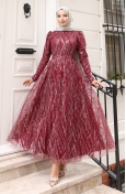 Sim Kaplama Kuşaklı Abiye Elbise 5613-02 Bordo
