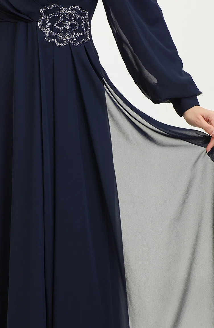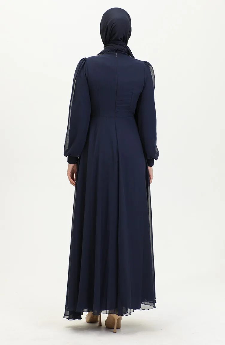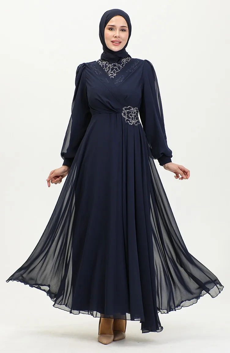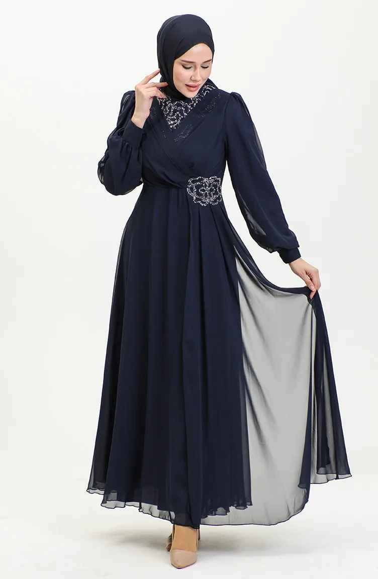 Taş Baskılı Abiye Elbise 52882-01 Lacivert