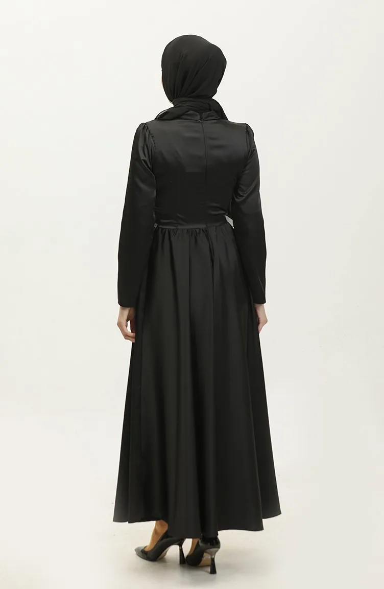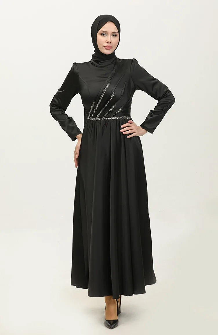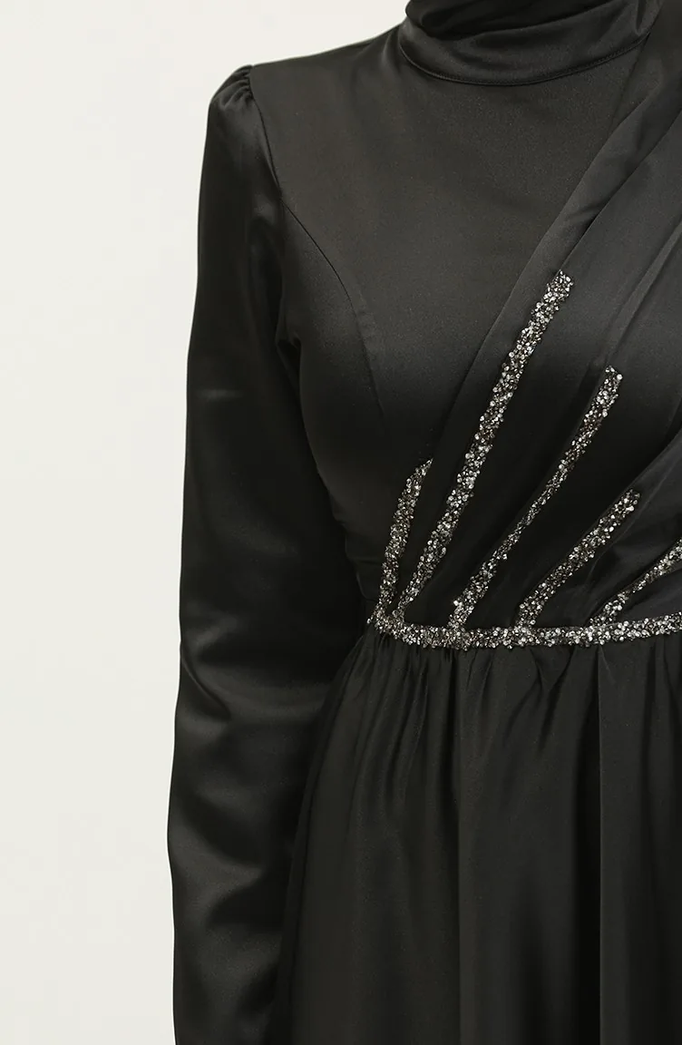 Taşlı Abiye Elbise 5762-04 Siyah