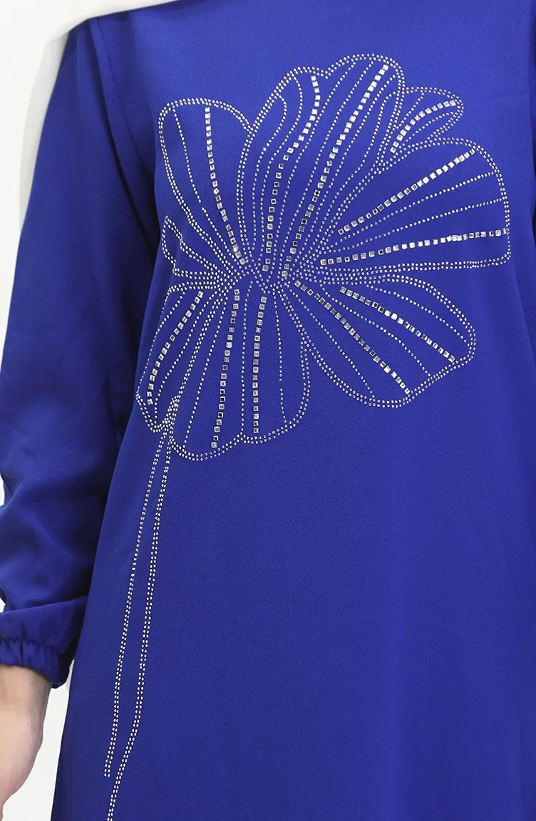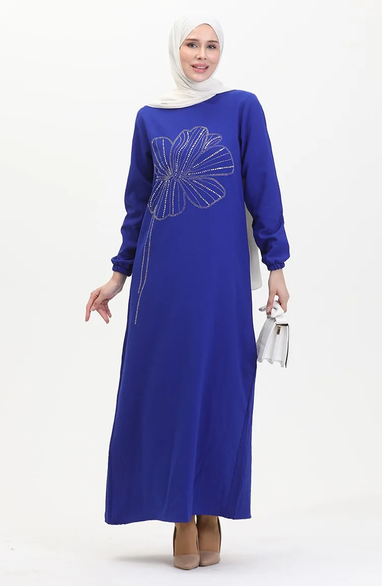 Taşlı Krep Abiye Elbise 0481-02 Saks