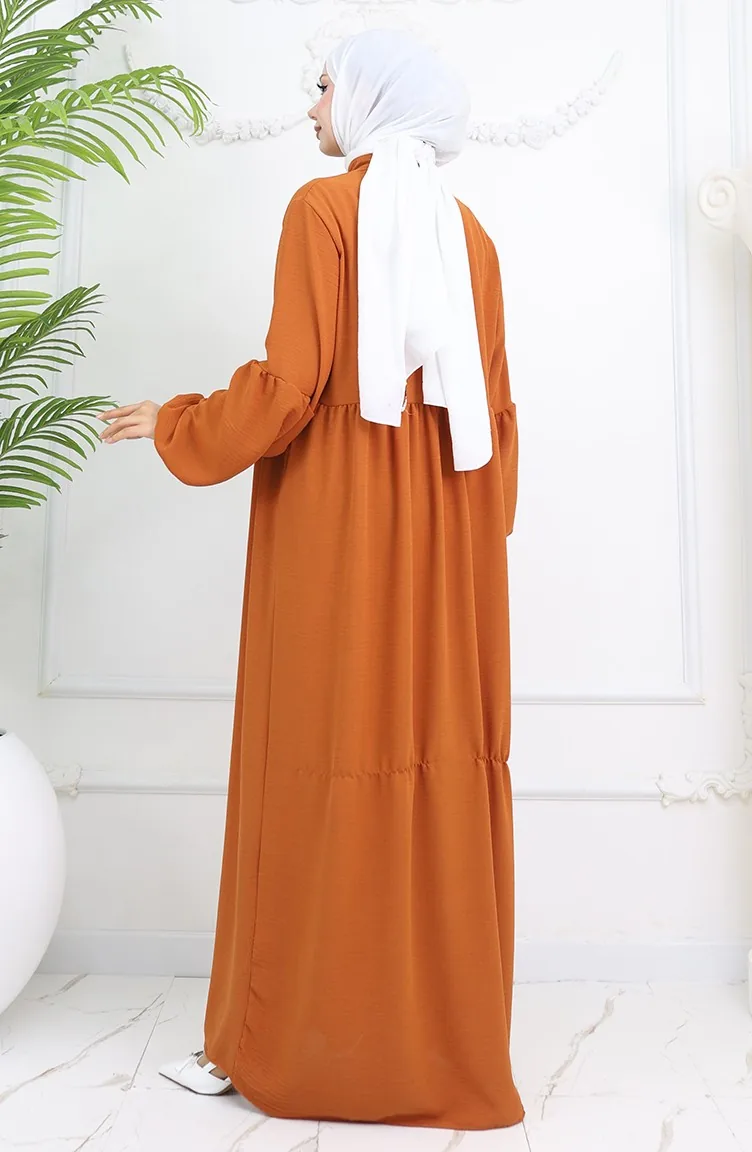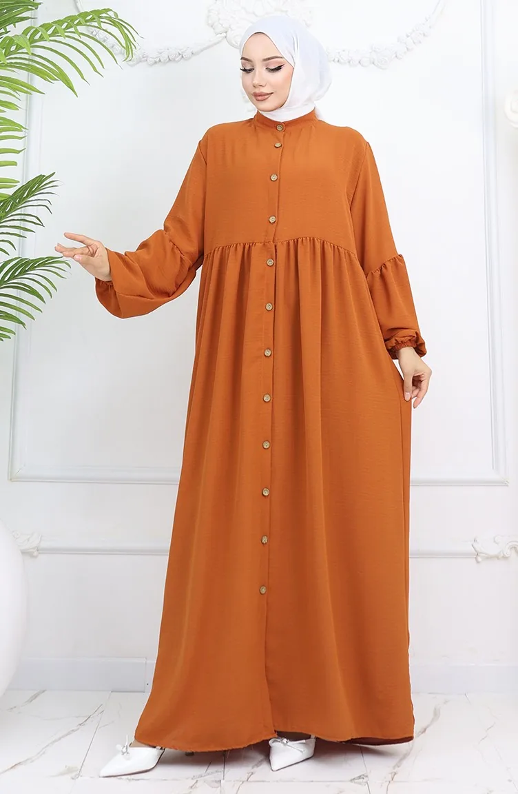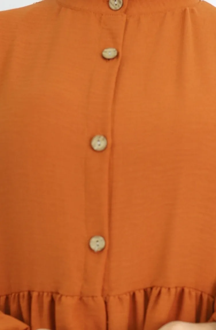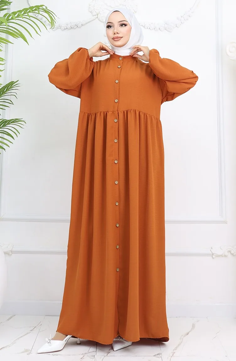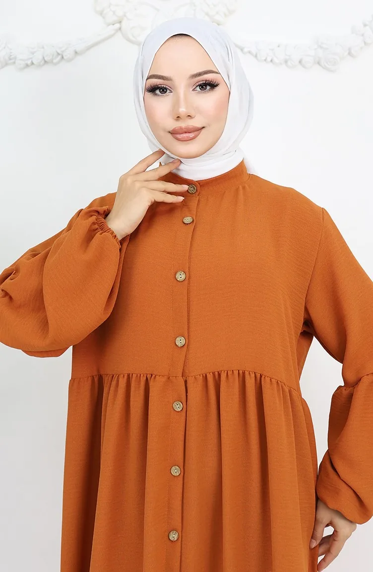 Aerobin Kumaş Boydan Düğmeli Elbise 0045-04 Kiremit