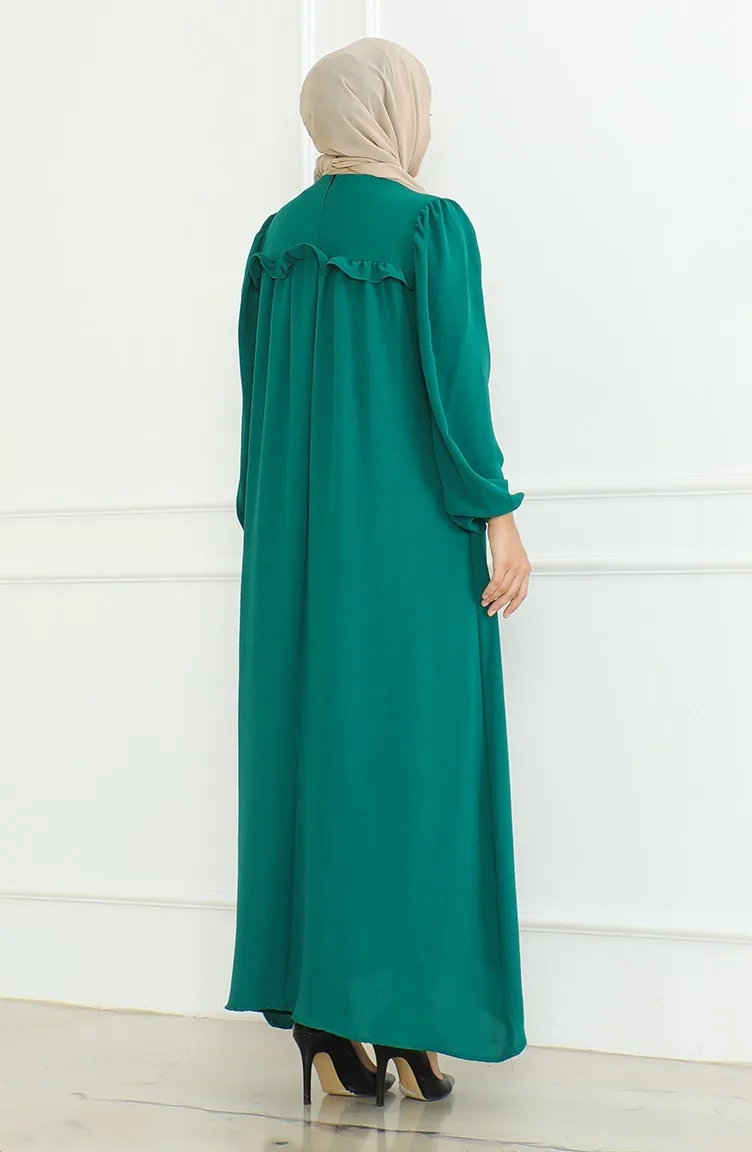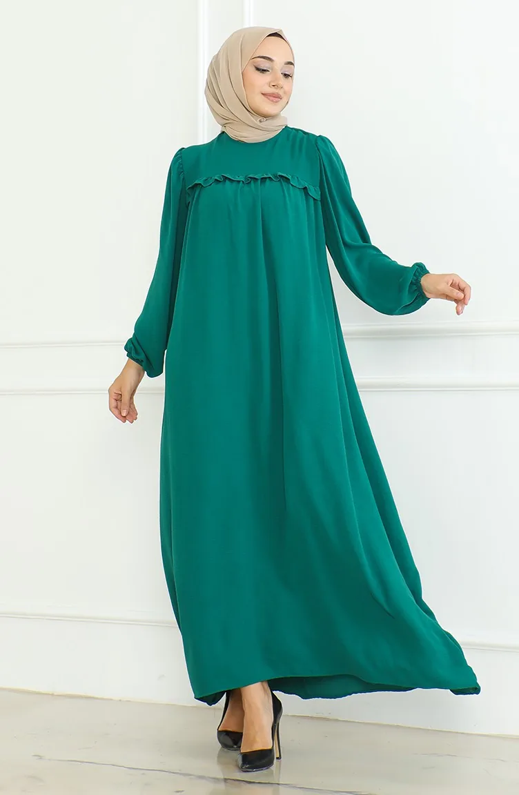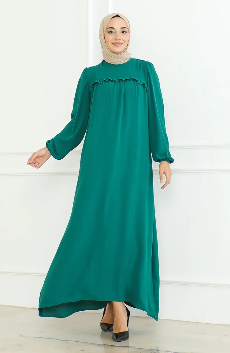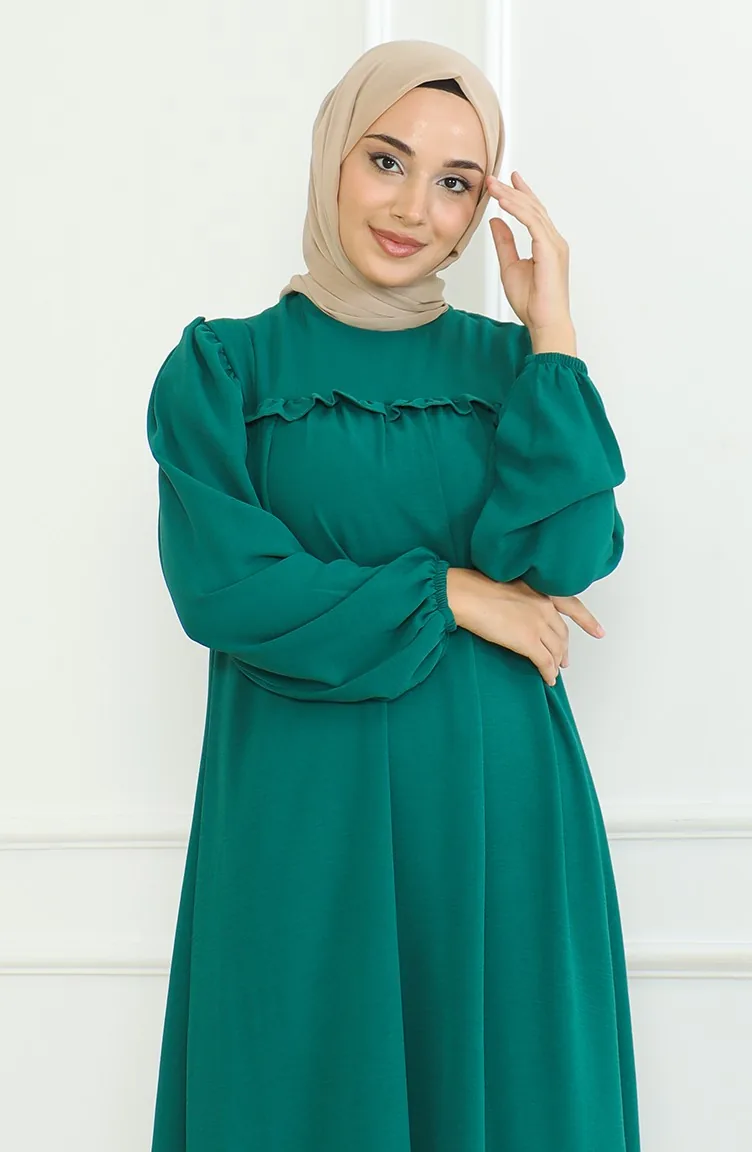 Aerobin Kumaş Kolu Lastikli Elbise 0465-06 Yeşil