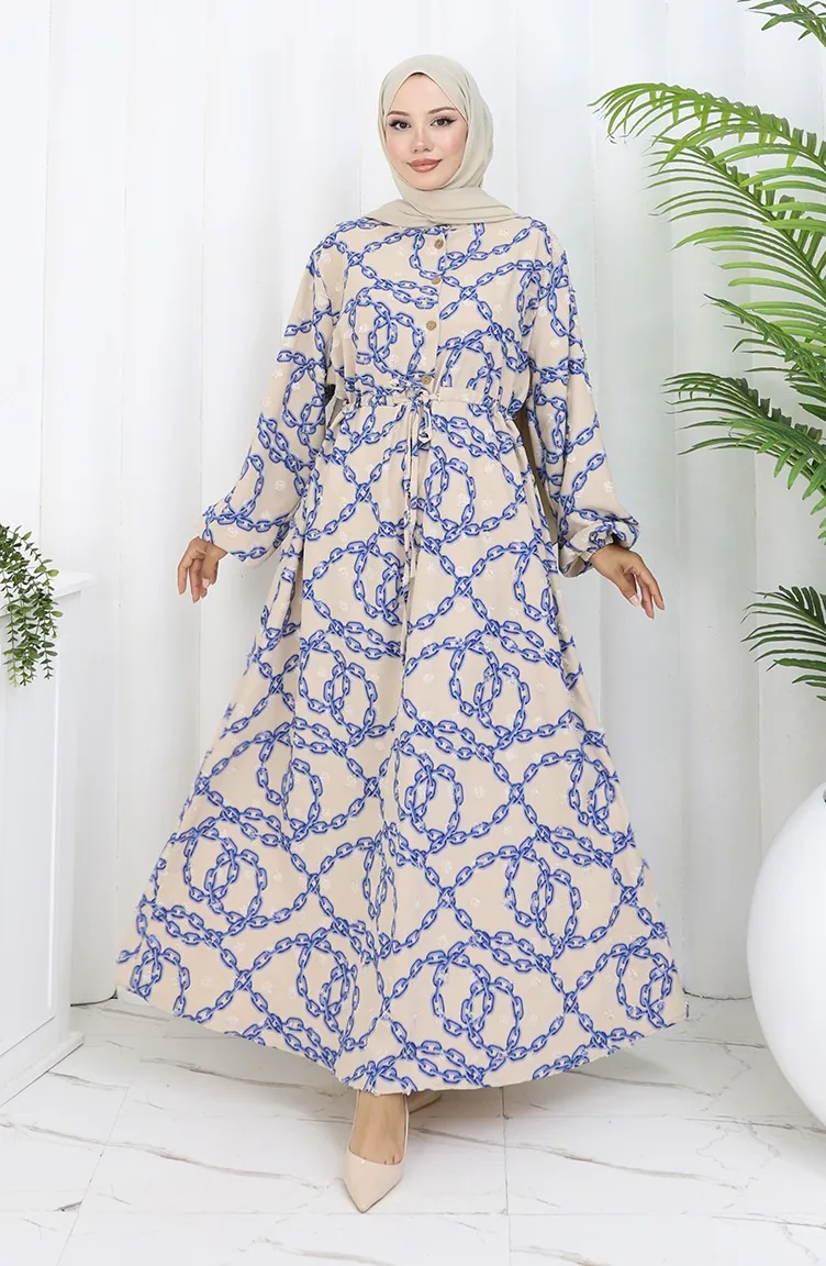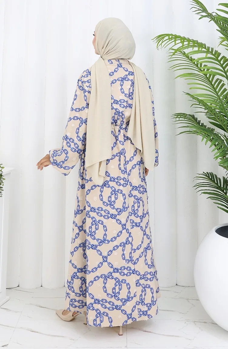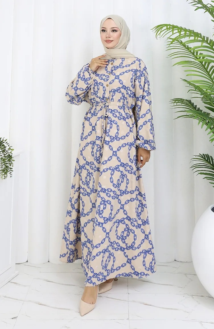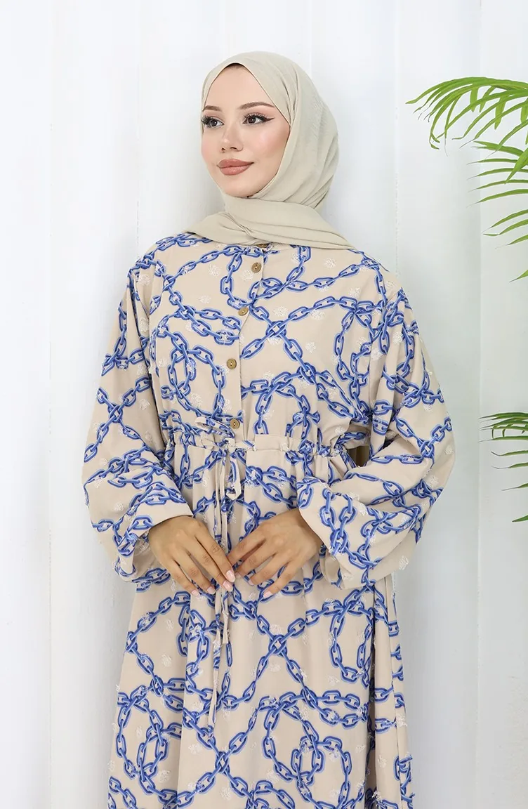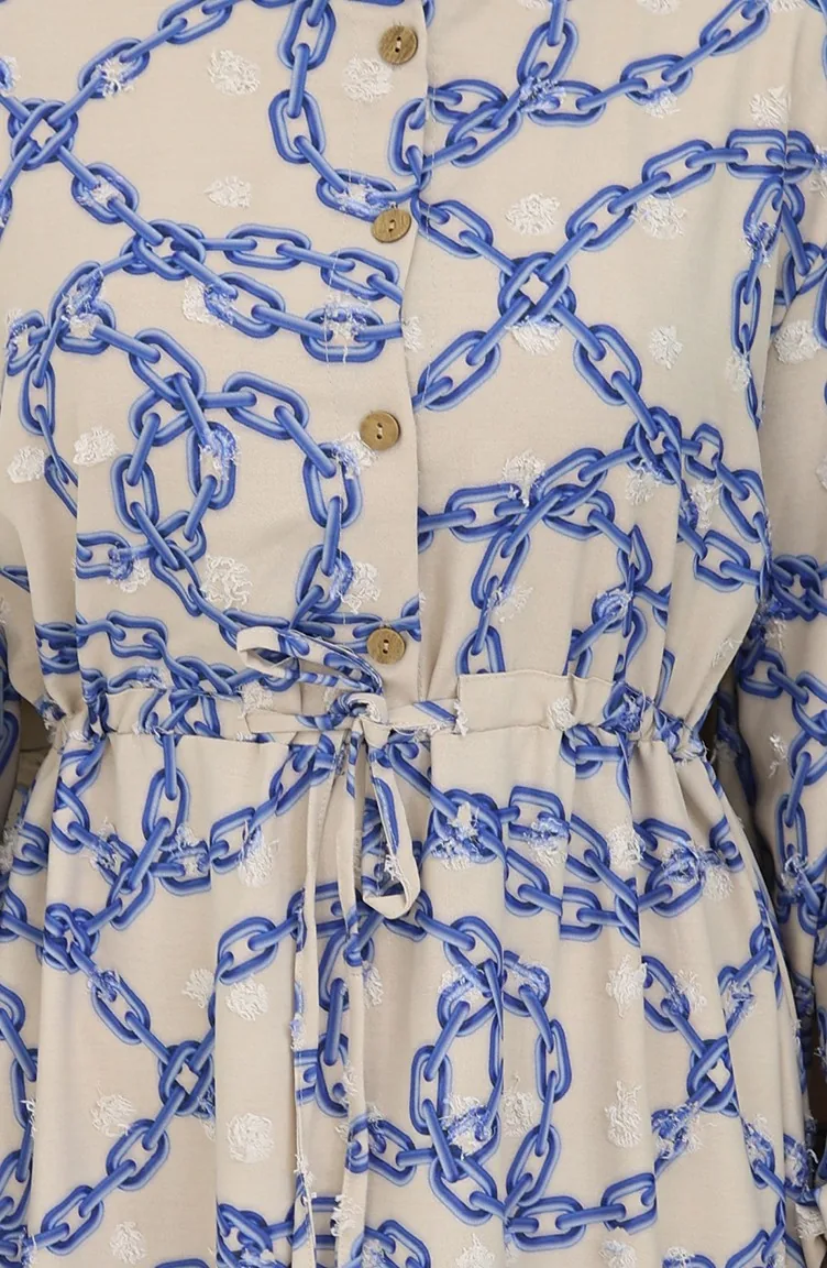 Aerobin Kumaş Zincir Desenli Elbise 0105-02 Vizon Lacivert