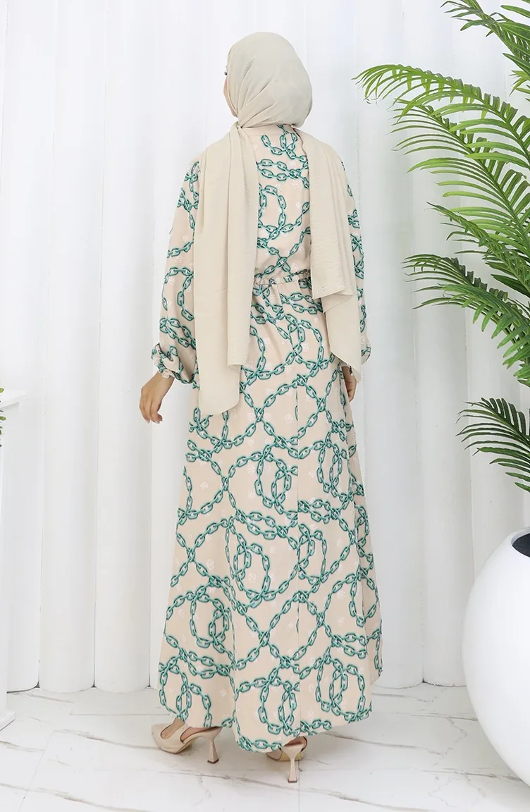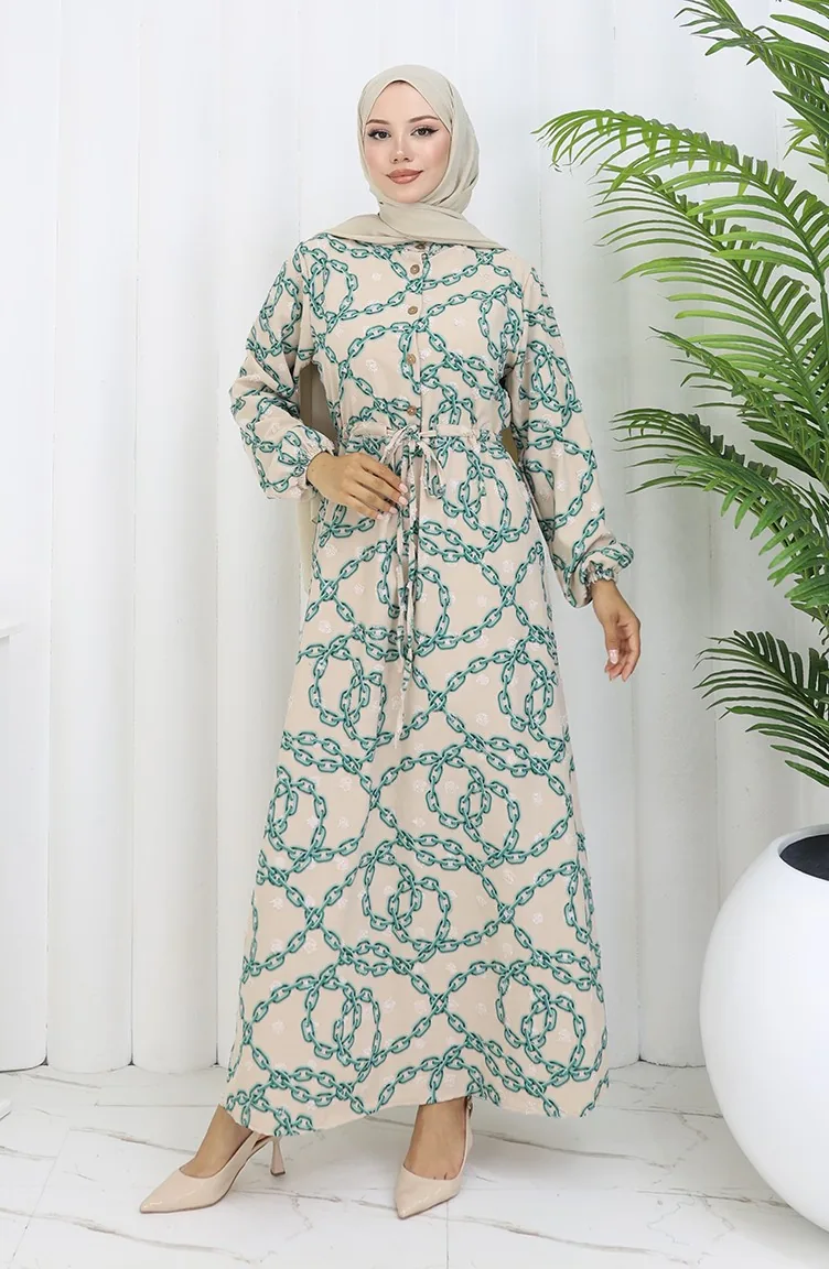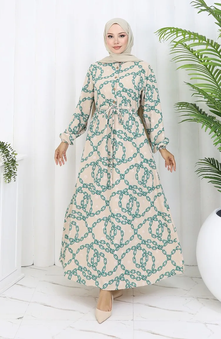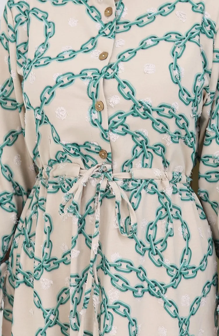Aerobin Kumaş Zincir Desenli Elbise 0105-03 Vizon Yeşil