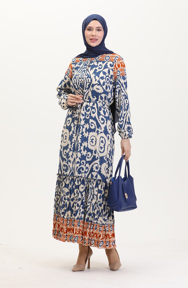 Amelya Farbalı Kuşaklı Viskon Elbise S-m-l-xl Beden 4588AB-03 İndigo