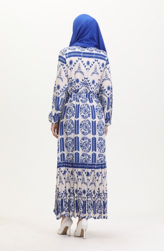 Amelya Farbalı Kuşaklı Viskon Elbise S-m-l-xl Beden 4588AC-02 Mavi