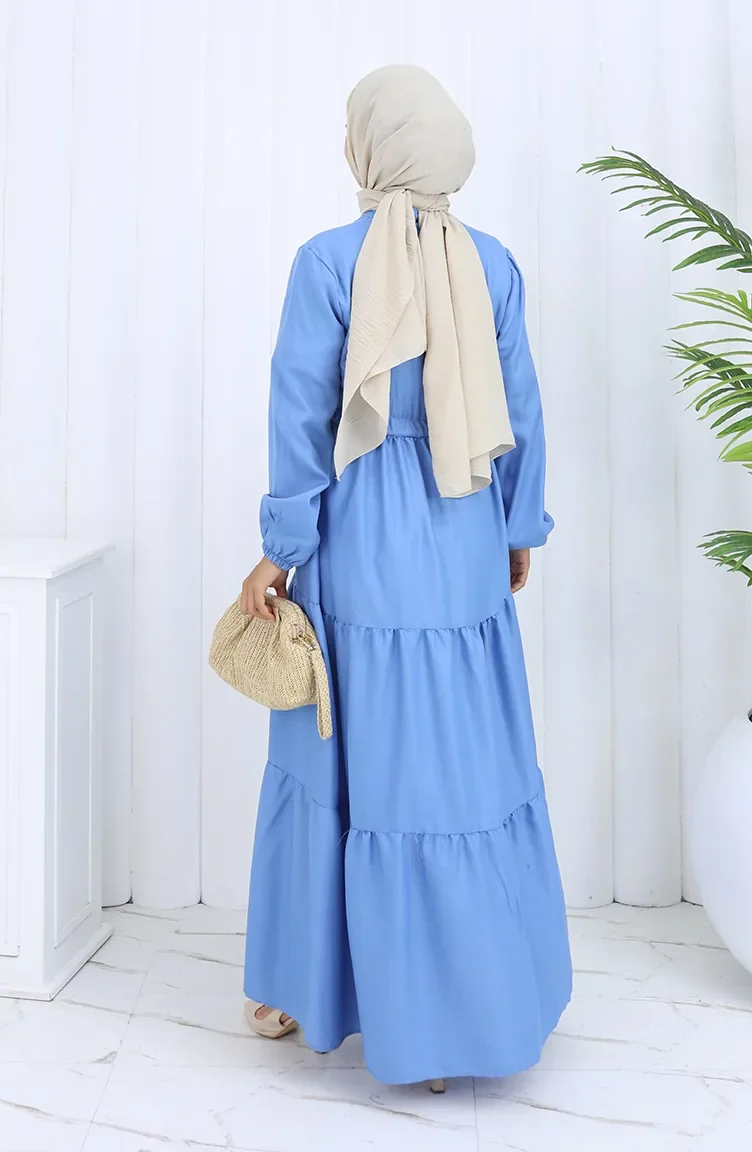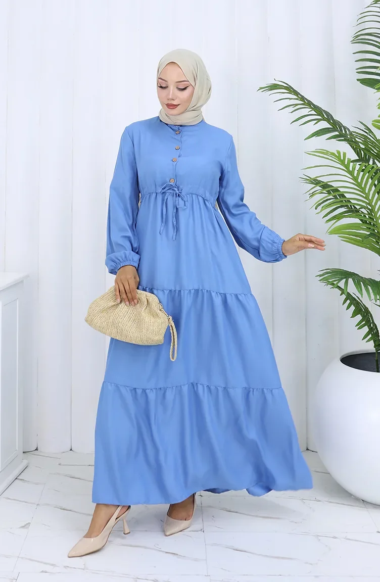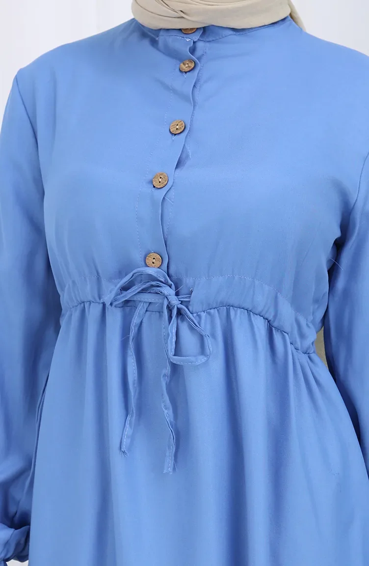 Beli Bağcıklı Düğmeli Elbise 0128-02 Açık Mavi