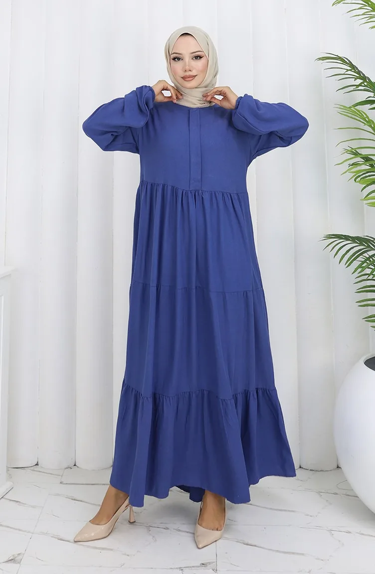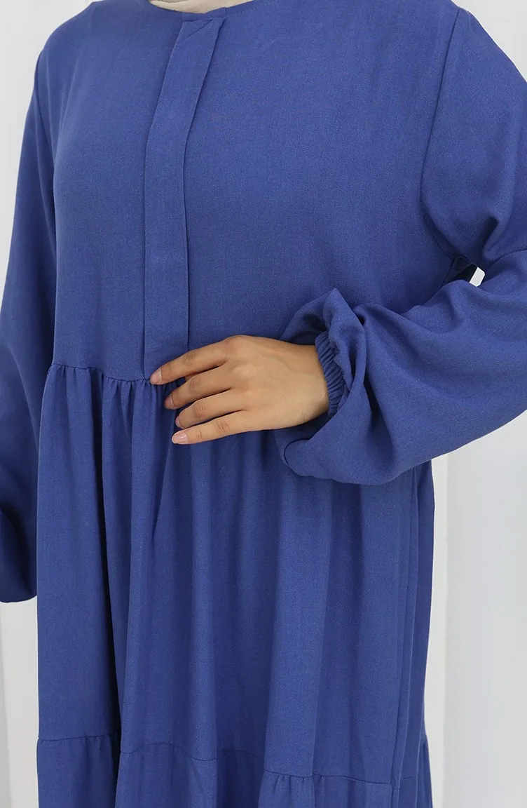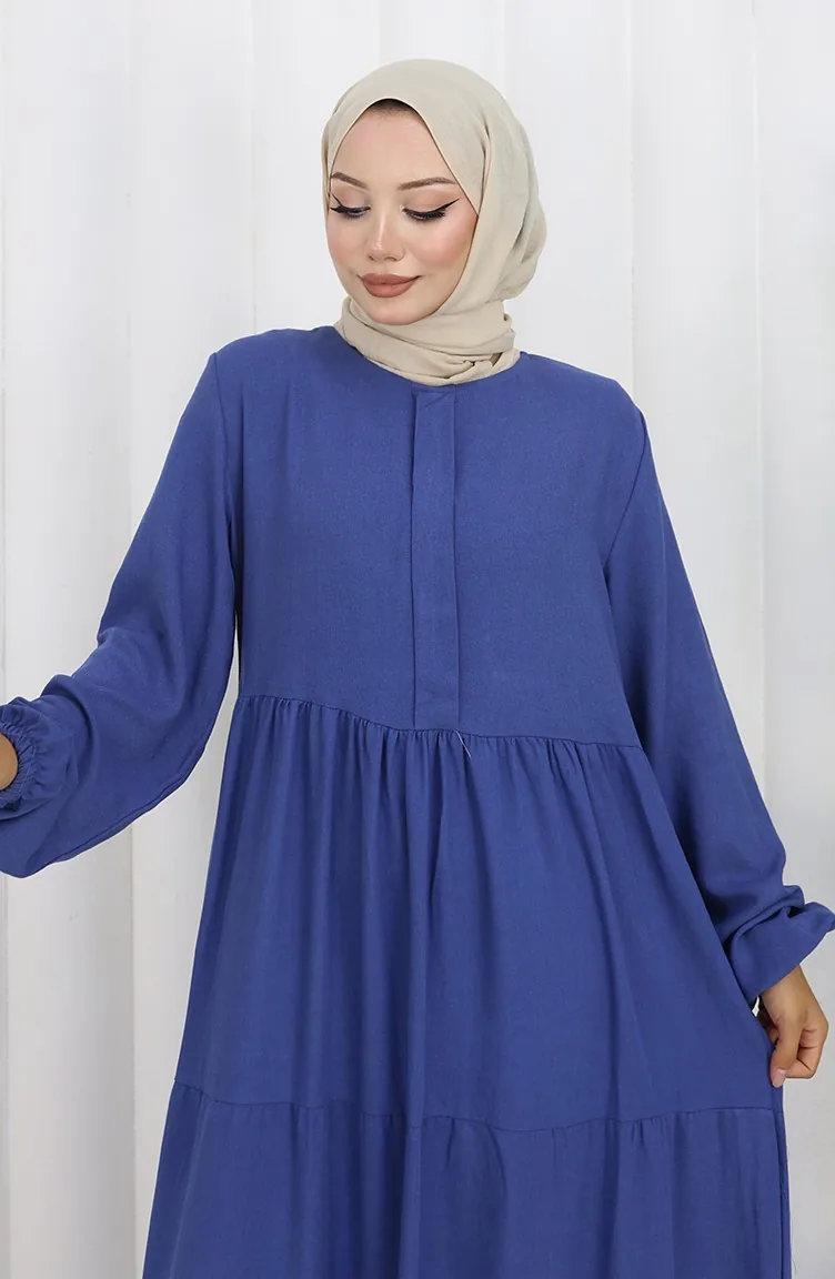 Beli Büzgülü Kolu Lastikli Elbise 2149-10 İndigo