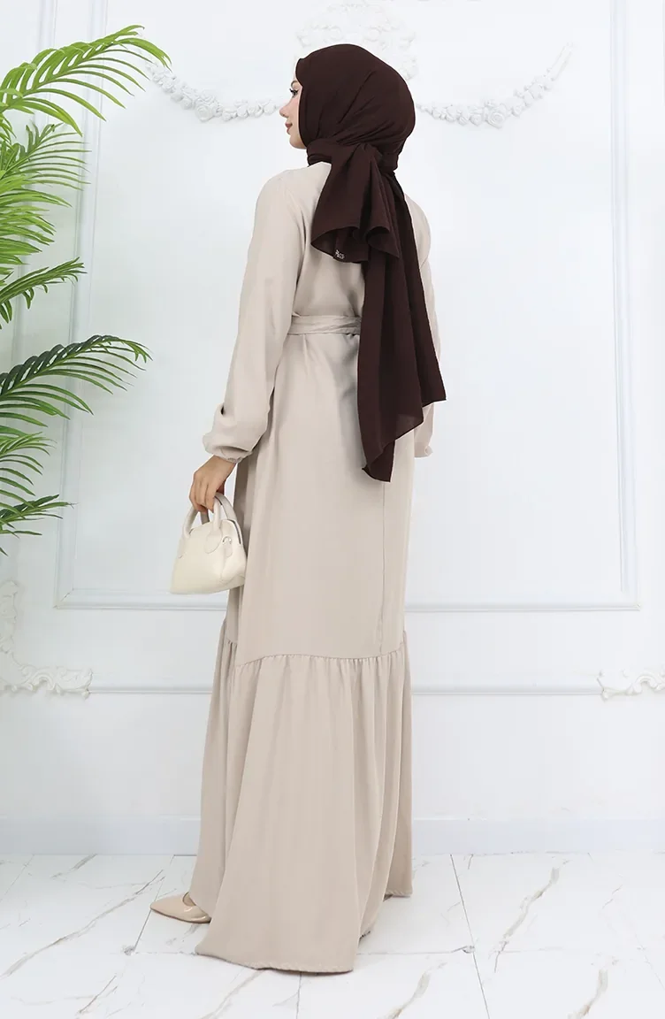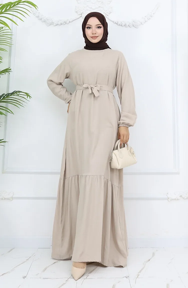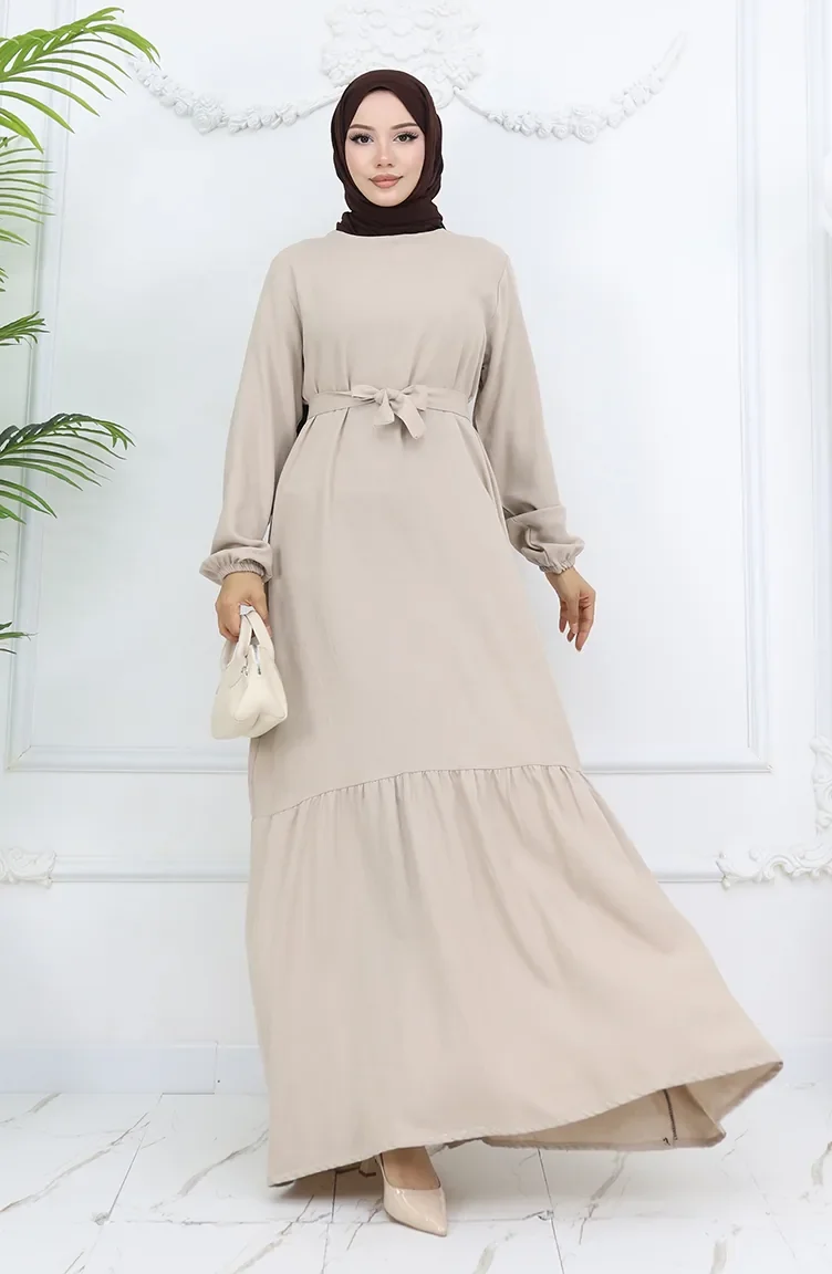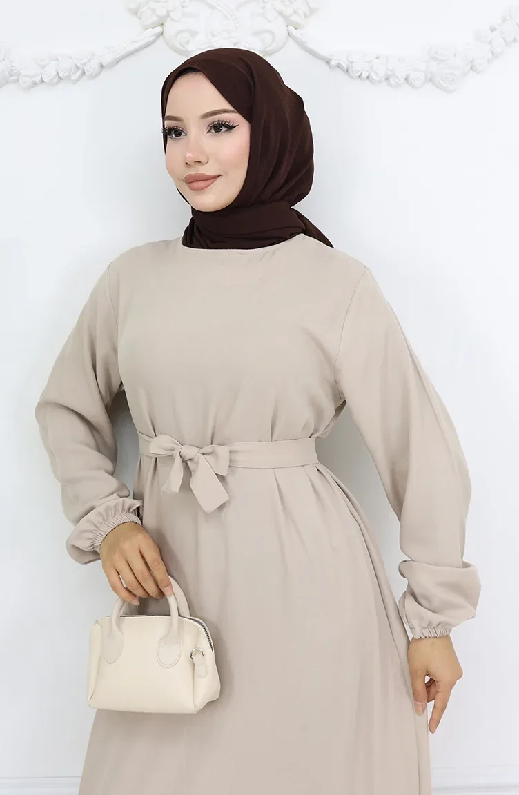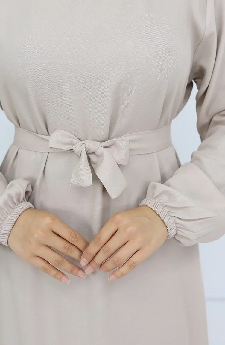 Belmando Kumaş Kuşaklı Elbise 2013-02 Vizon