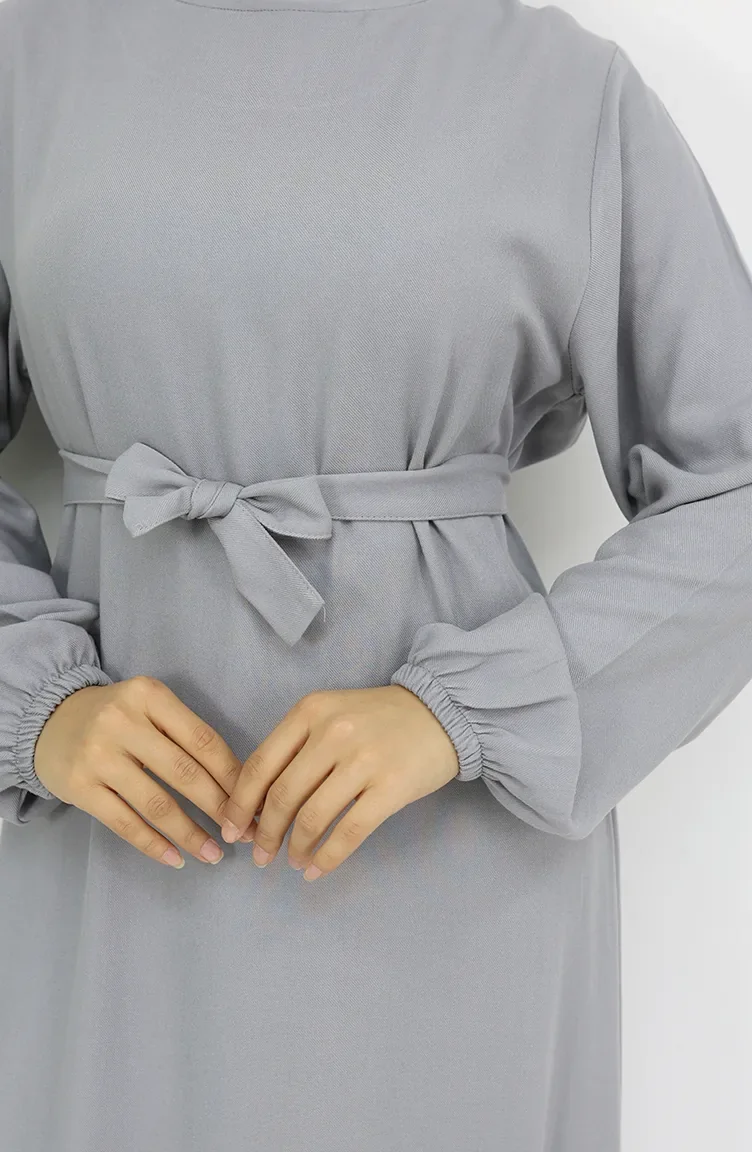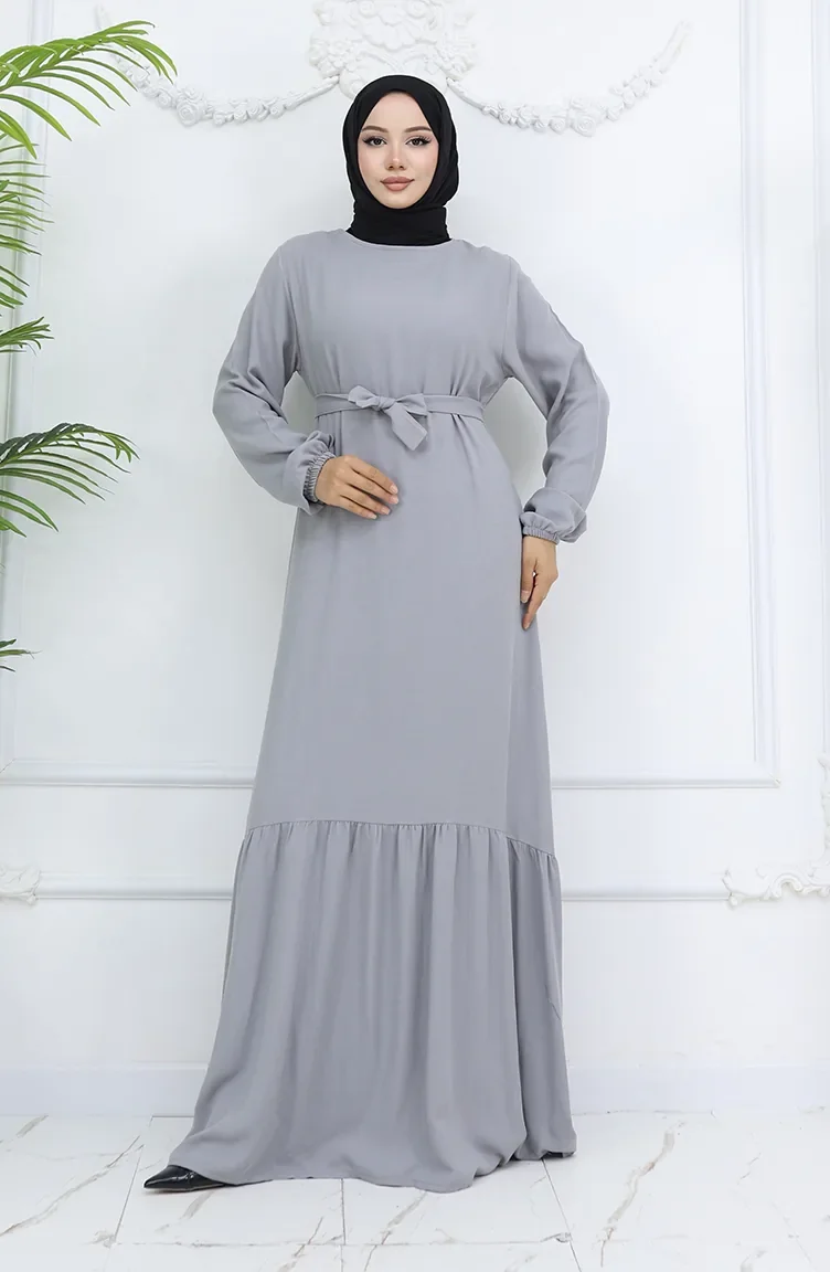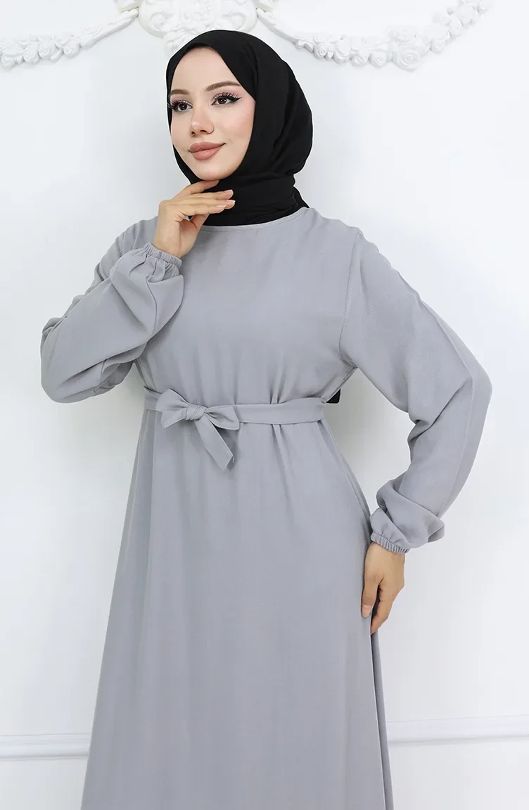 Belmando Kumaş Kuşaklı Elbise 2013-09 Gri