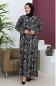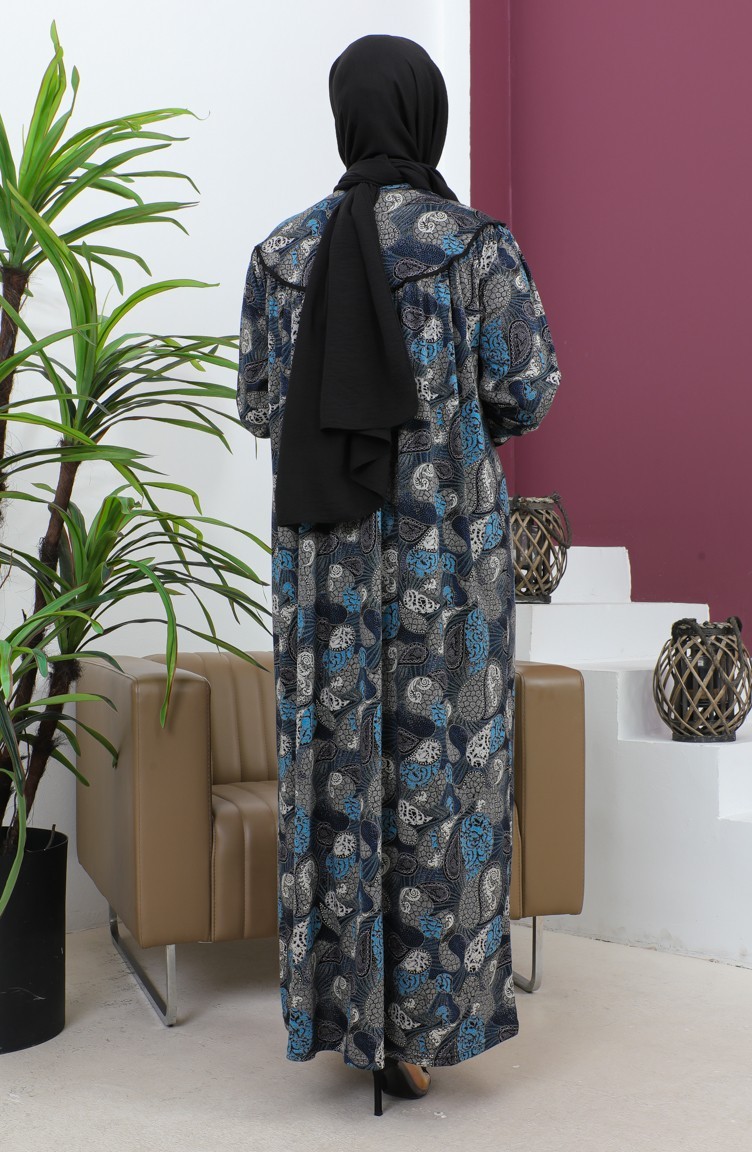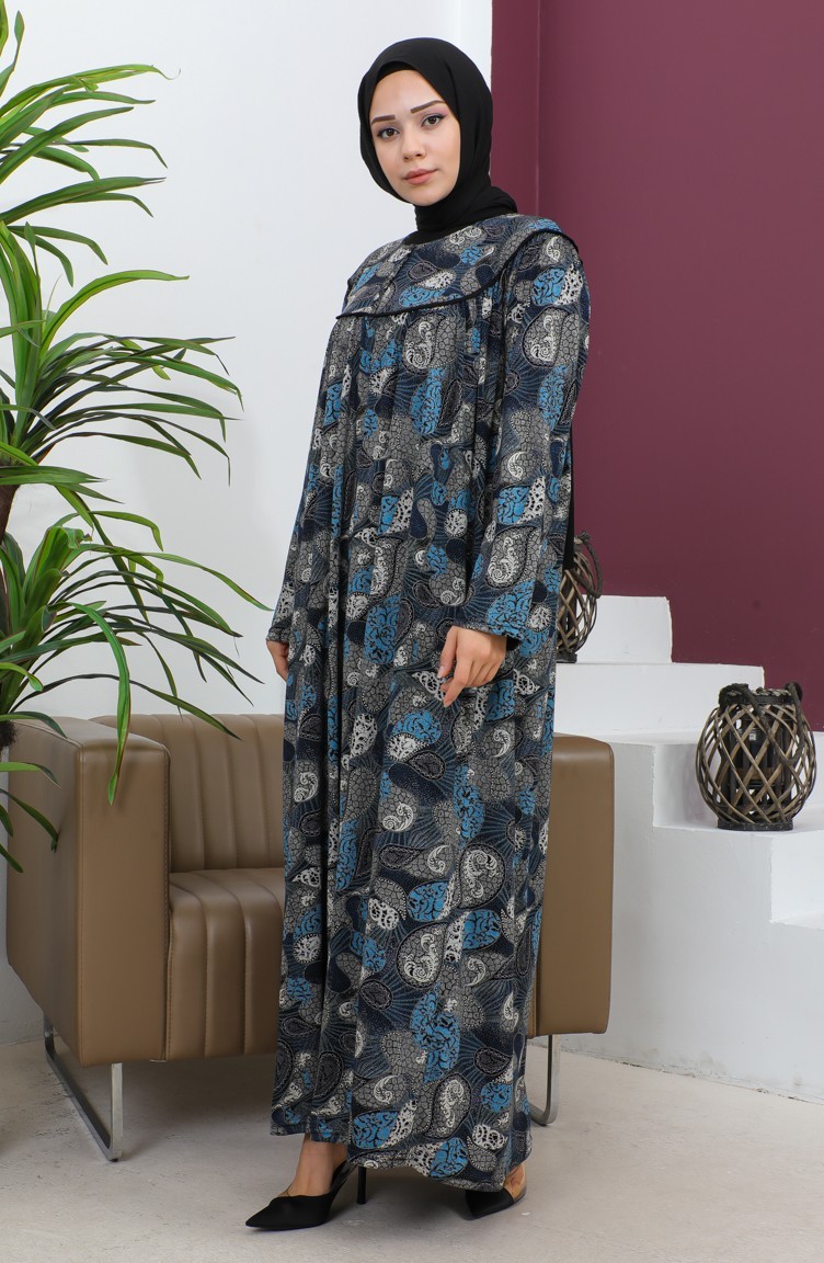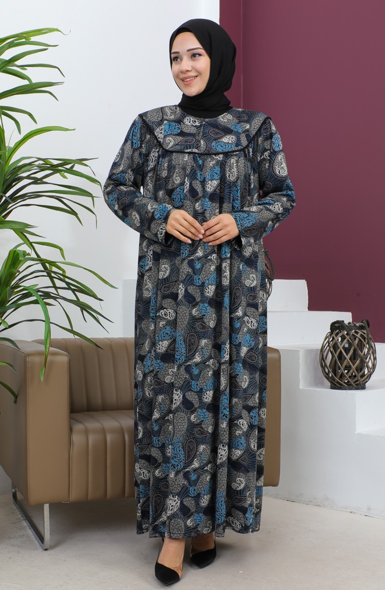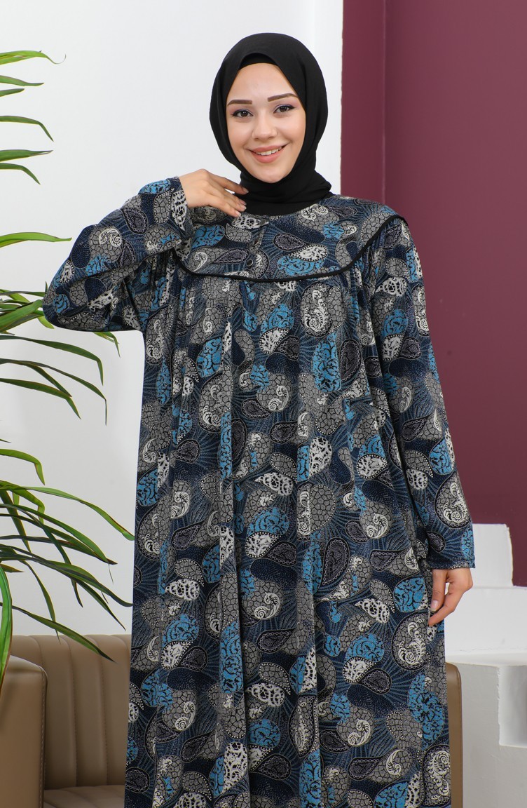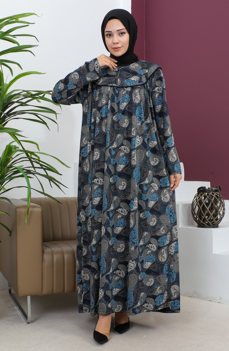 Büyük Beden Desenli Penye Elbise 4470-03 İndigo