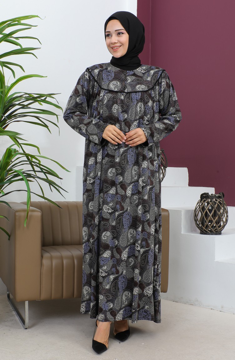 Büyük Beden Desenli Penye Elbise 4470-04 Kahverengi