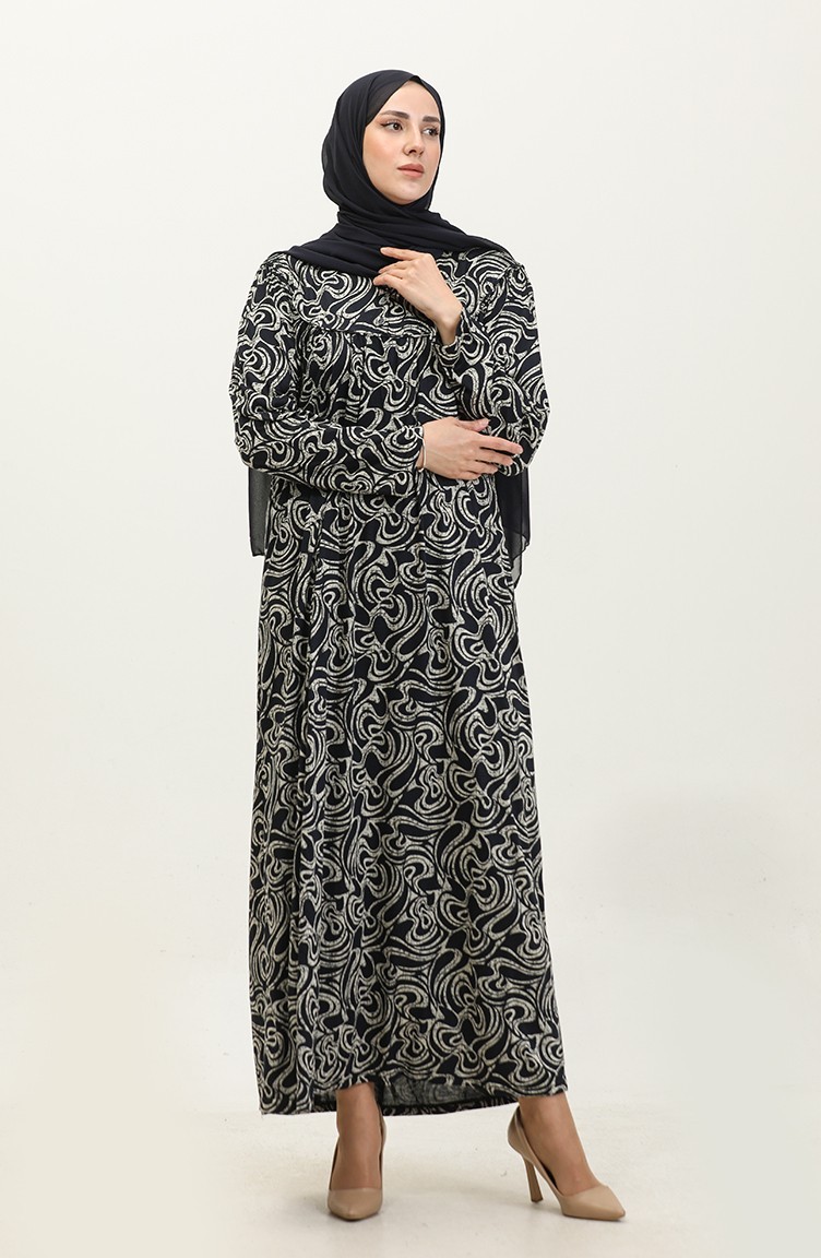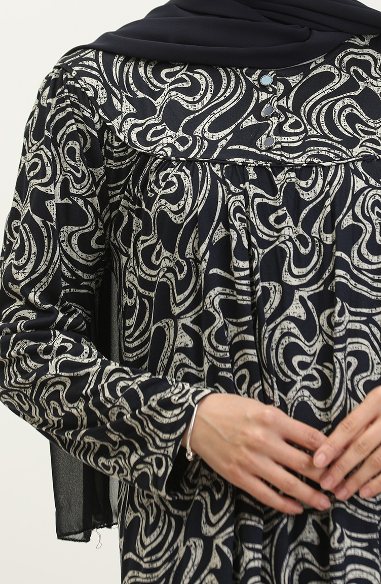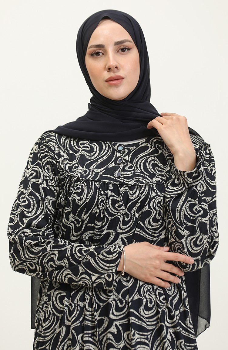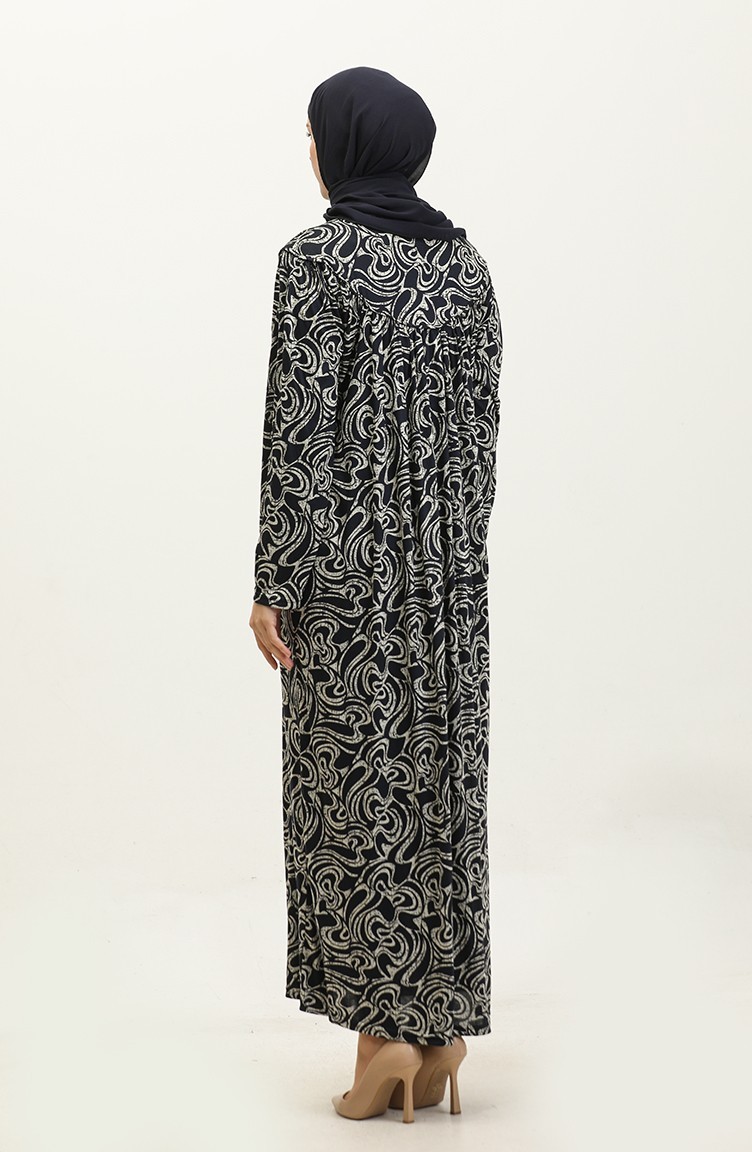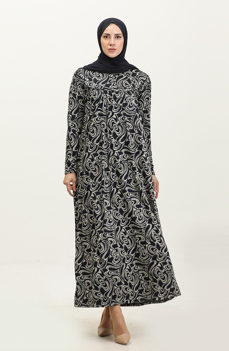 Büyük Beden Desenli Viskon Elbise 4470C-02 Lacivert