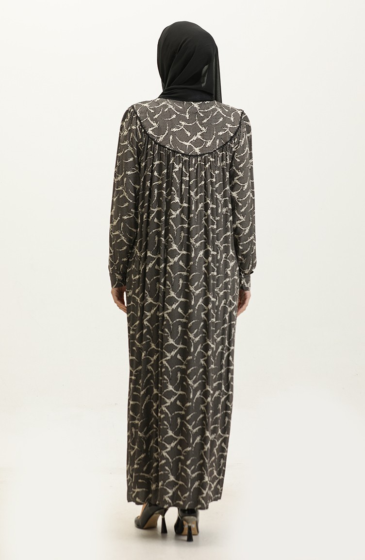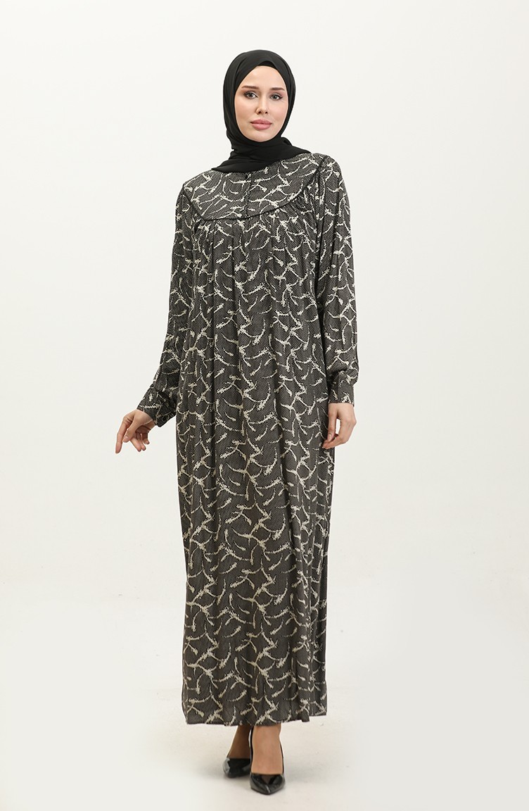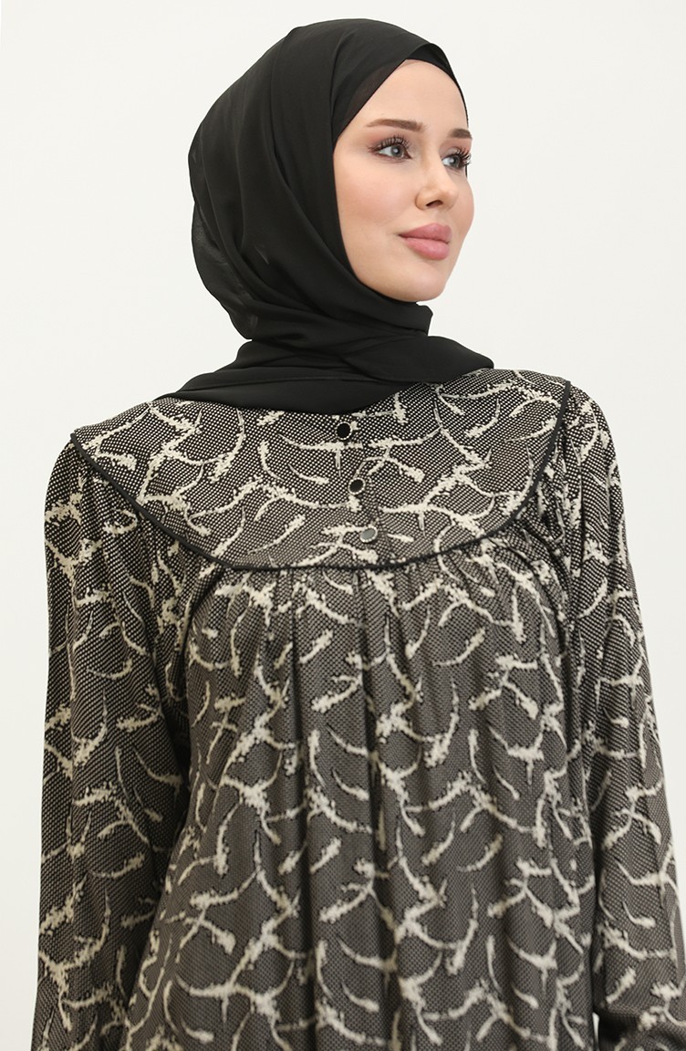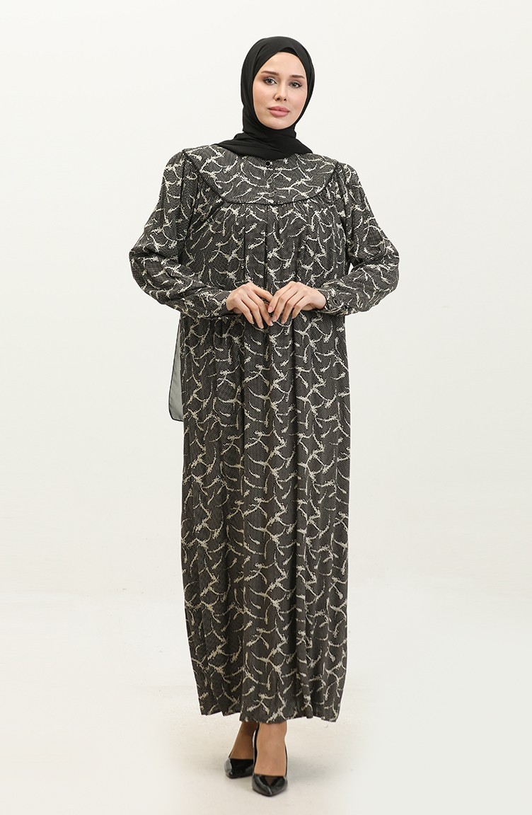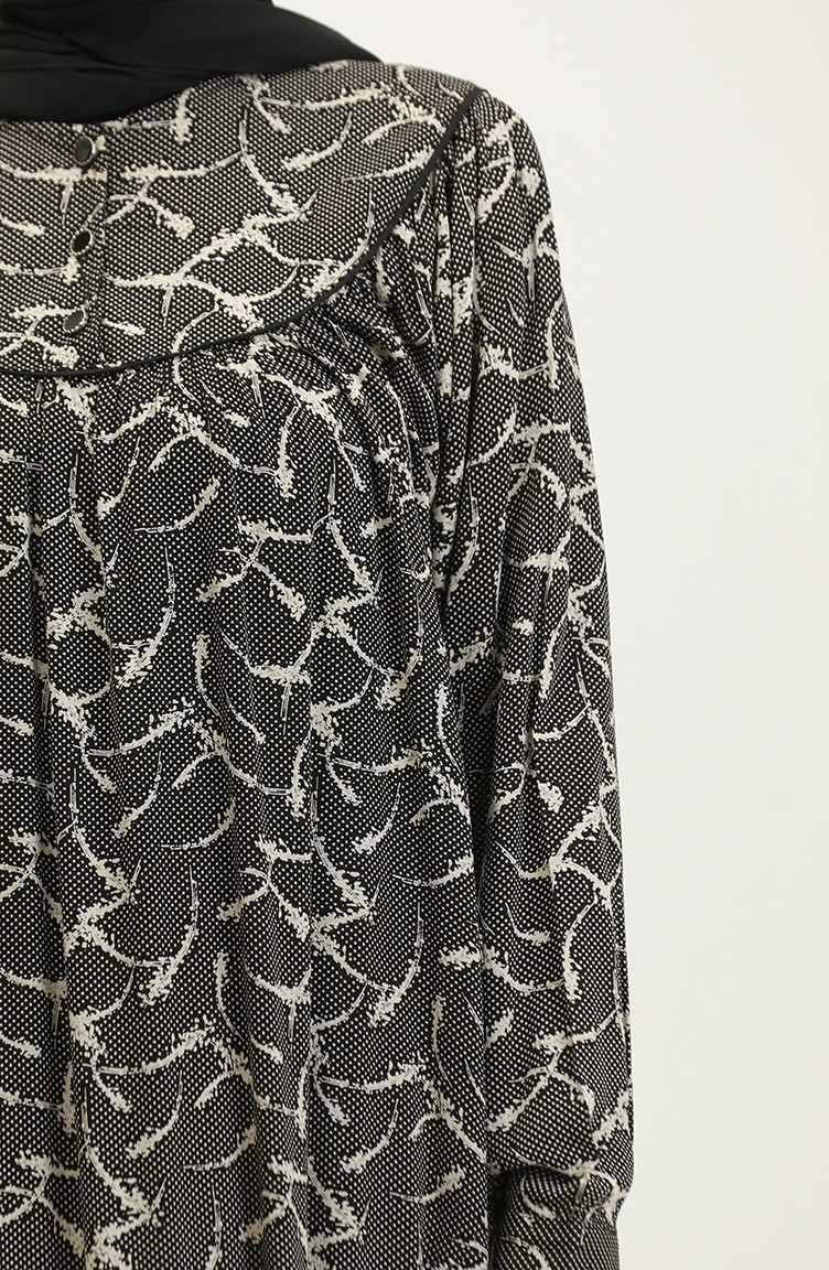 Büyük Beden Desenli Viskon Elbise 4473D-01 Siyah